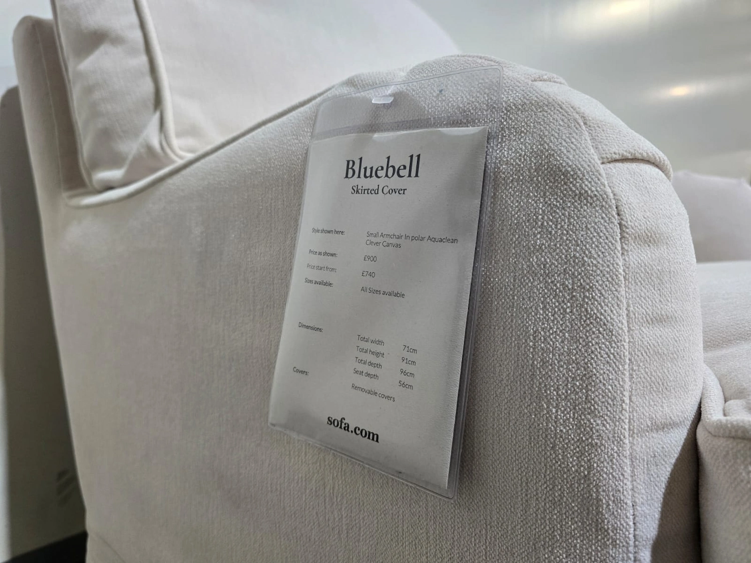 Sofa.com Bluebell Small Armchair In Polar Aquaclean Clever Canvas RRP-£900