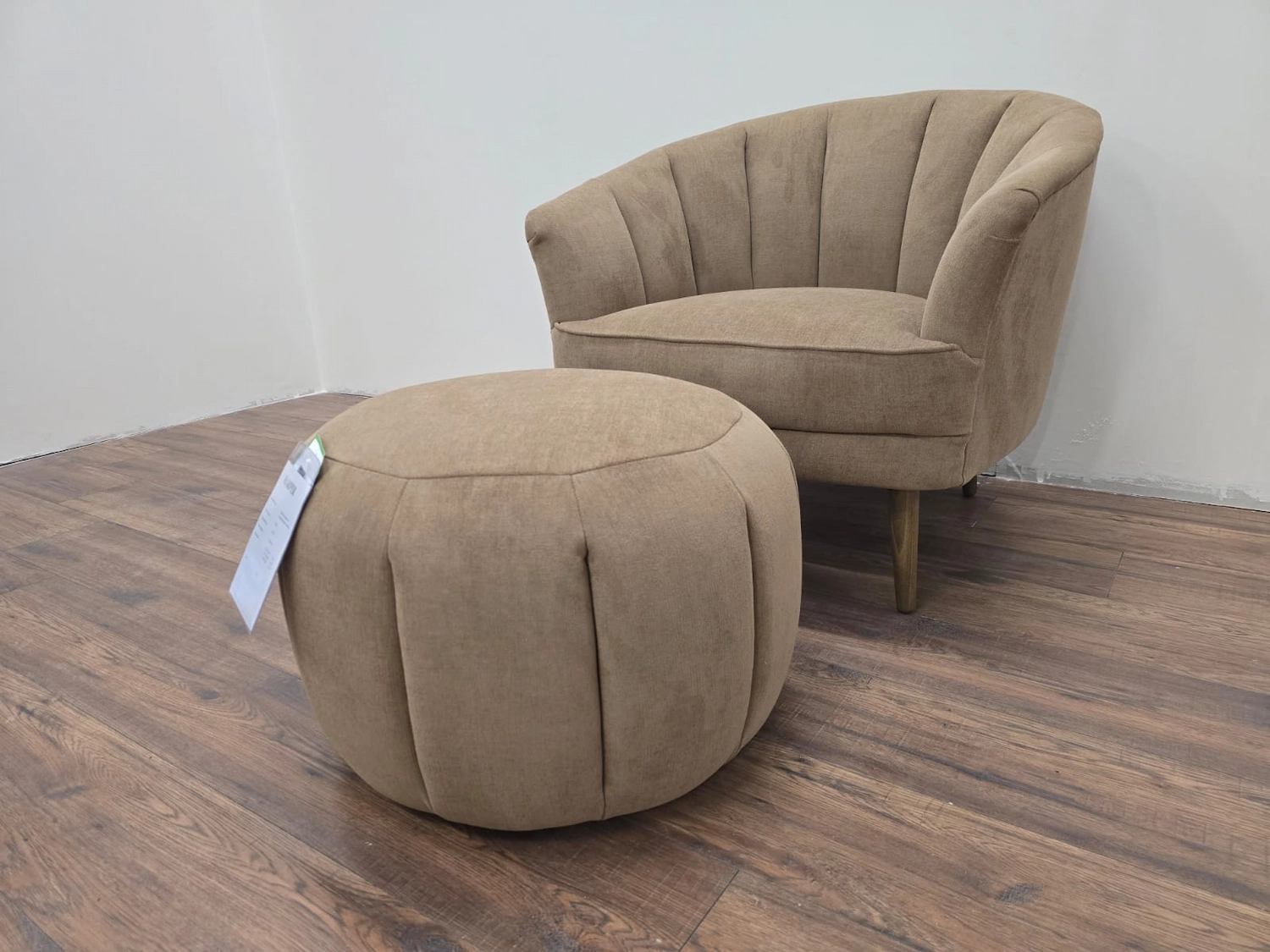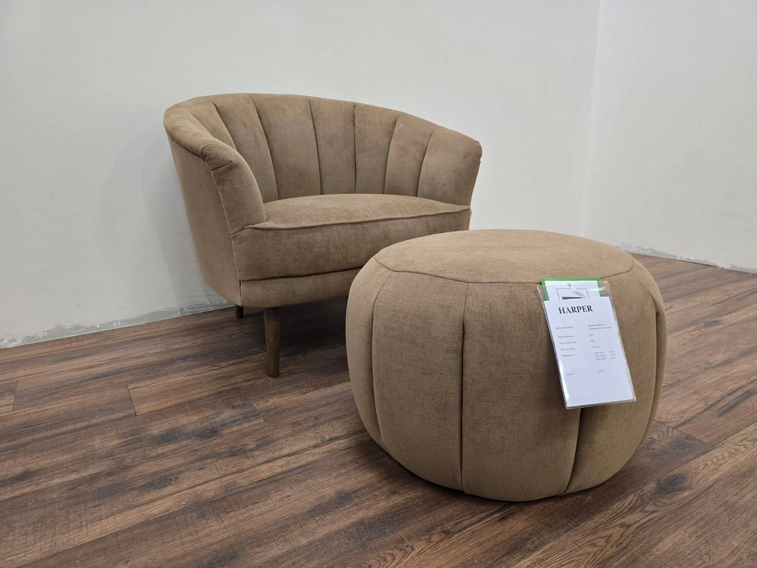 Sofa.com Harper Art Deco Armchair & Footstool In Cinnamon Aquaclean Clever Canvas RRP-£1500