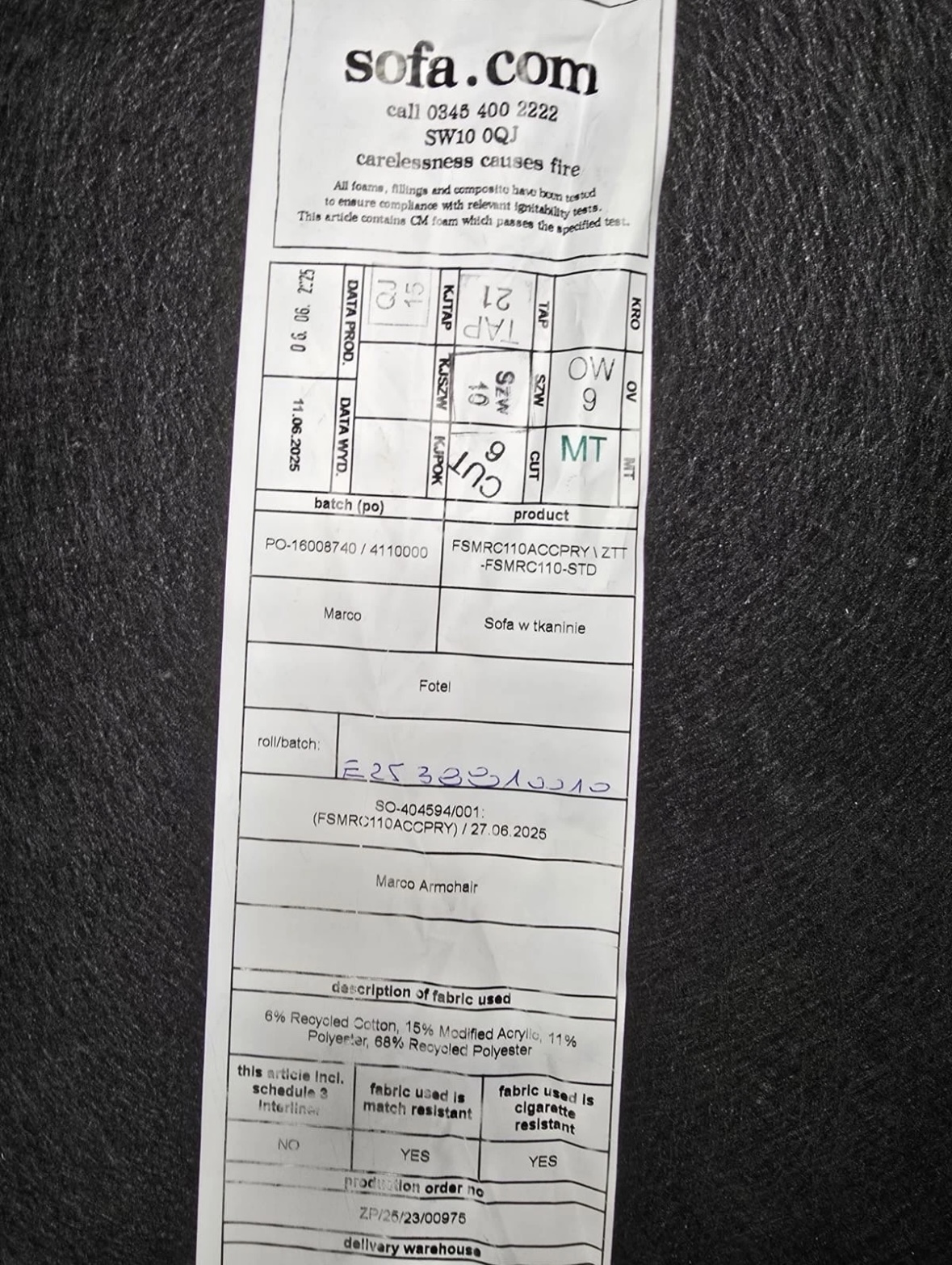 Material Composition: 6% Recycled Cotton, 15% Acrylic, 11% Polyester, 68% Recycled Polyester.
