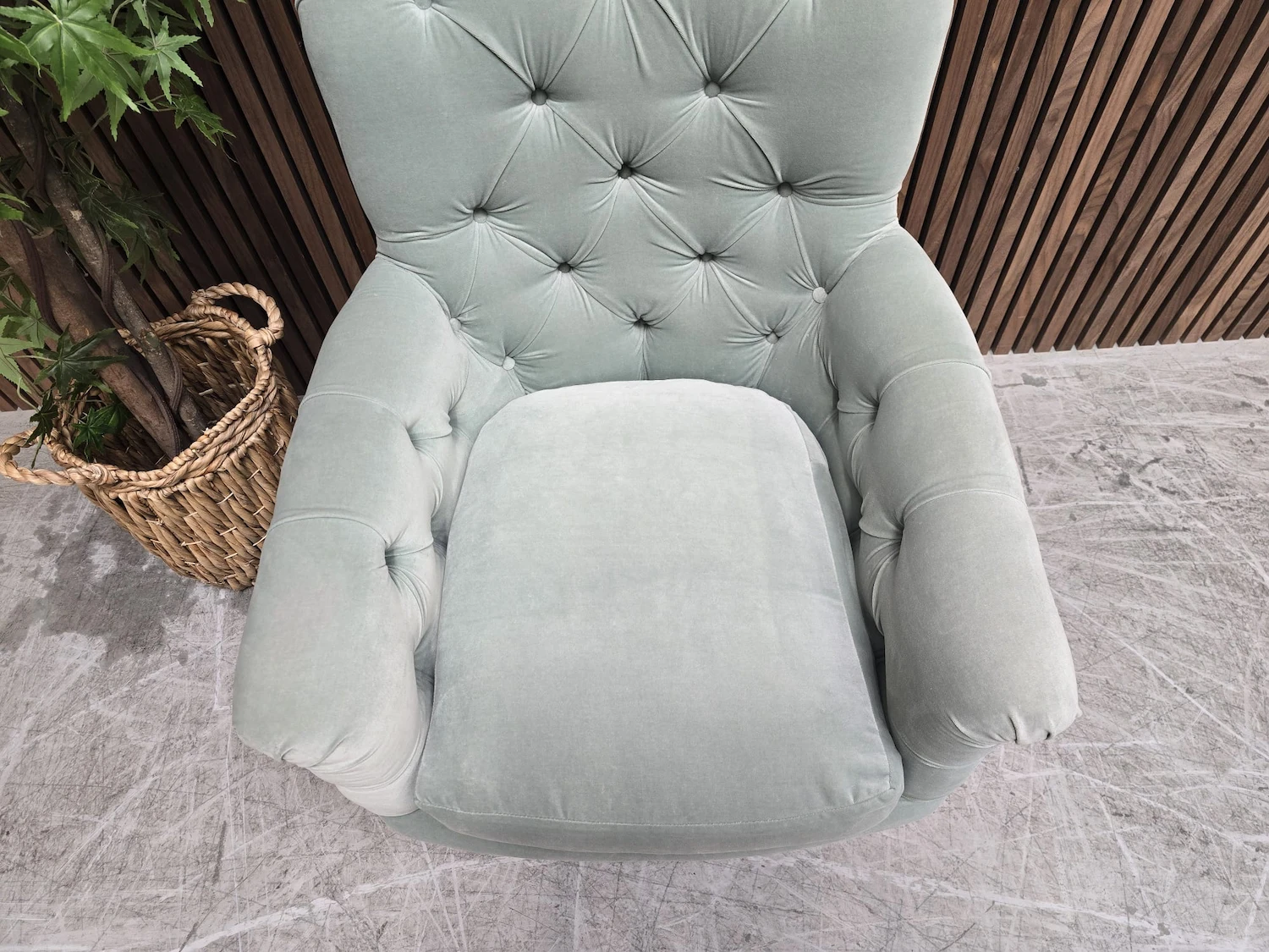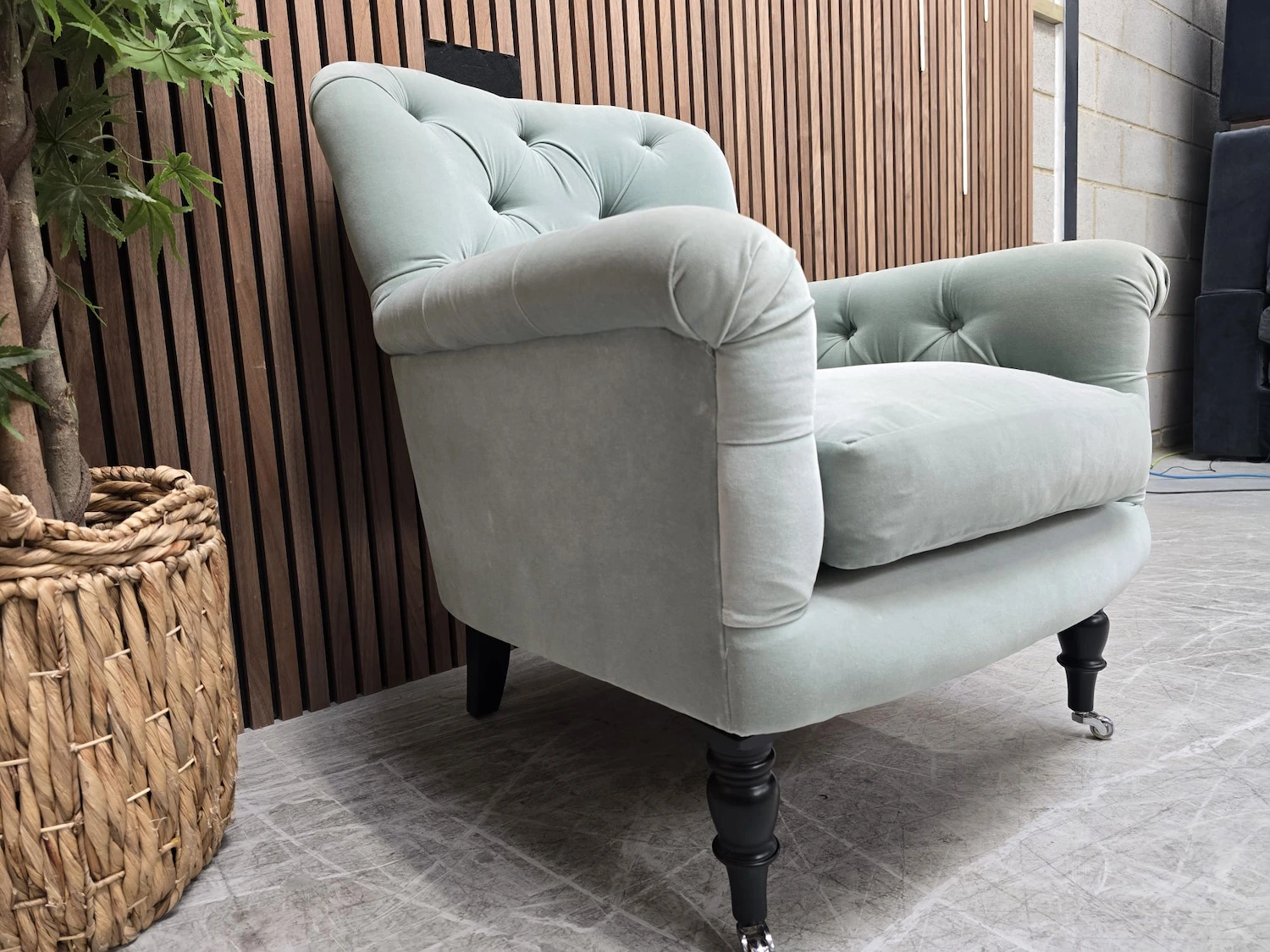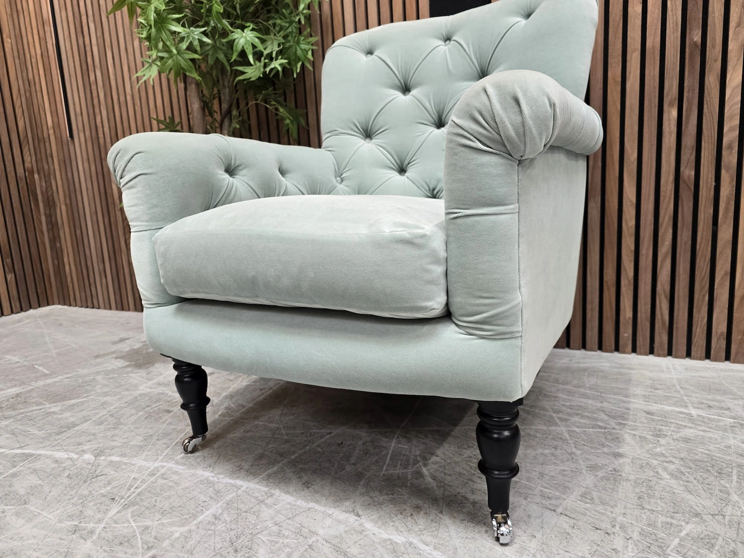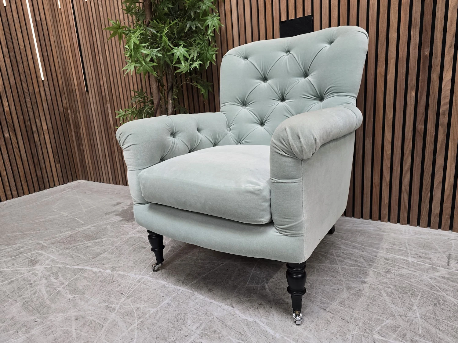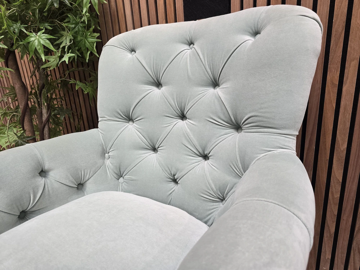 Sofa.com Poppy Buttoned Back Armchair In Sage Smart Velvet RRP-£1090