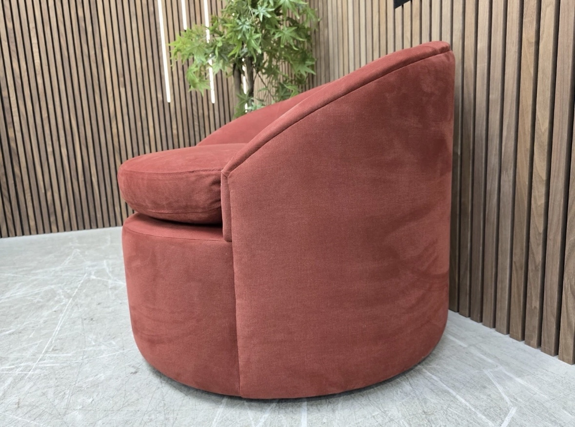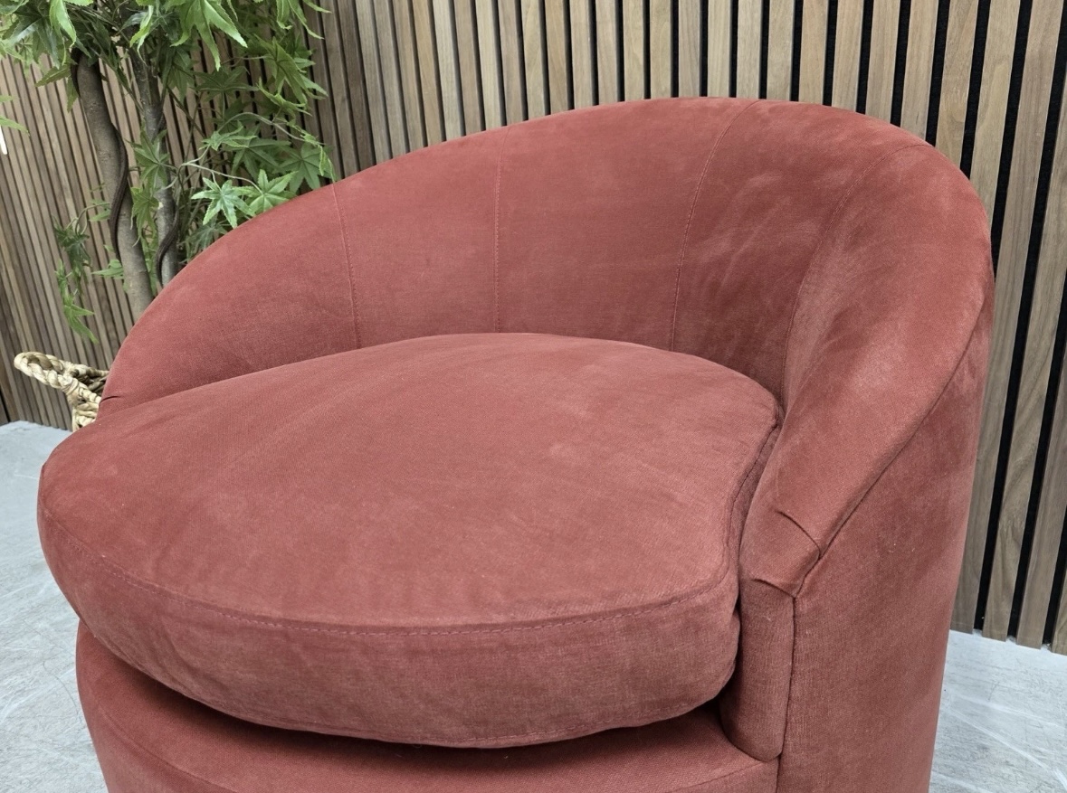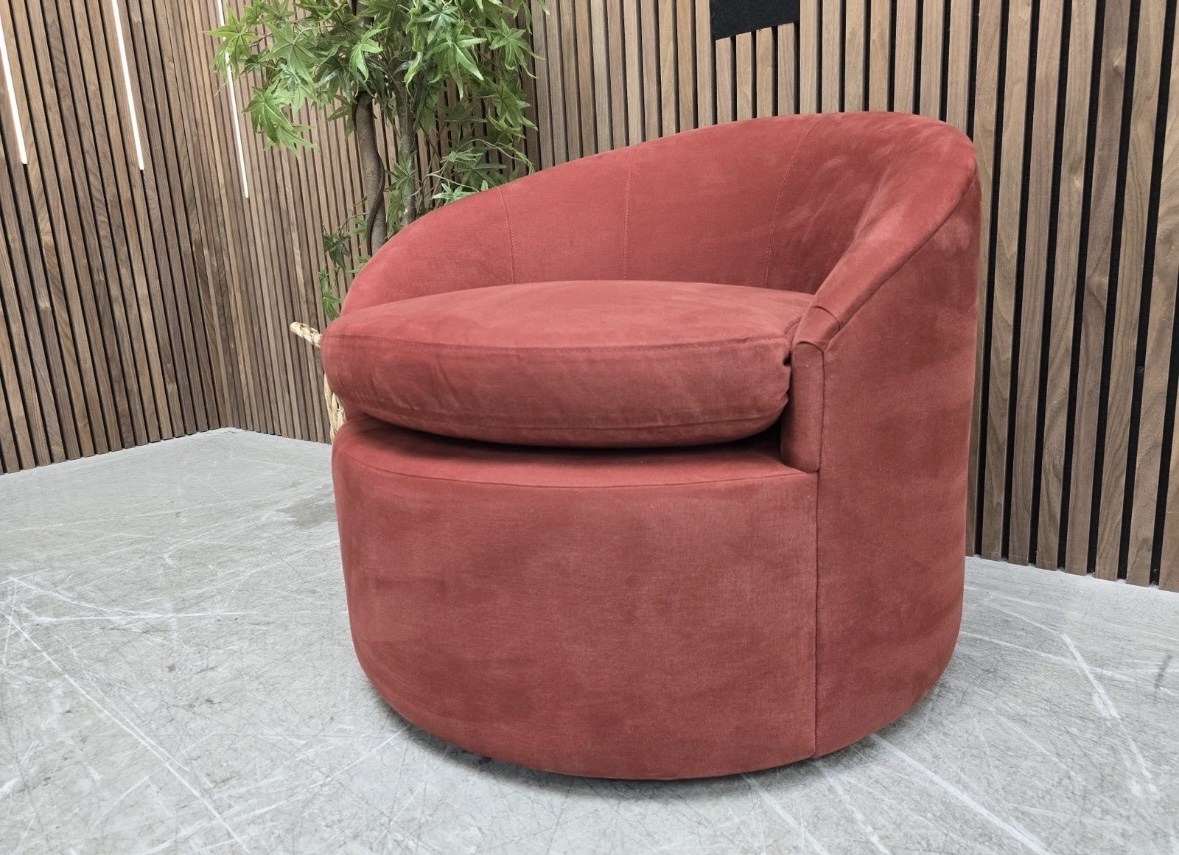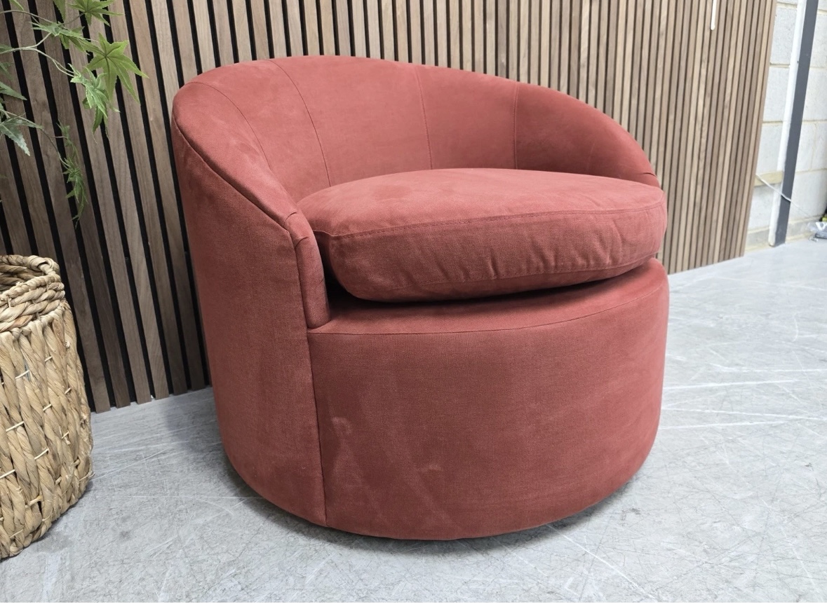 Sofa.com Ellora Swivel Chair In Cognac Leather & Chantilly Aquaclean Chenille RRP-£1520