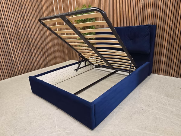 Designer Patterdale Double Storage Ottoman Bed Frame In Blue Velvet RRP-£1449