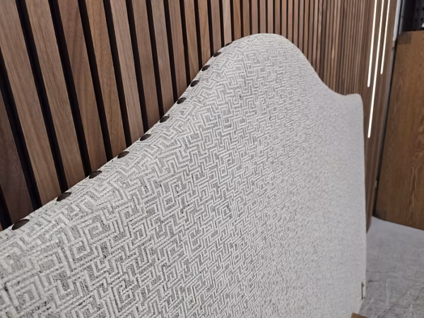 A Fixed Cover Headboard Featuring The Iconic Camel Shape, Accentuated With Large, Widely Spaced Hand Studding Along The Curved Headboard. A Classic Design, Presenting a Sophisticated Look That Suits Both City & Country Settings.