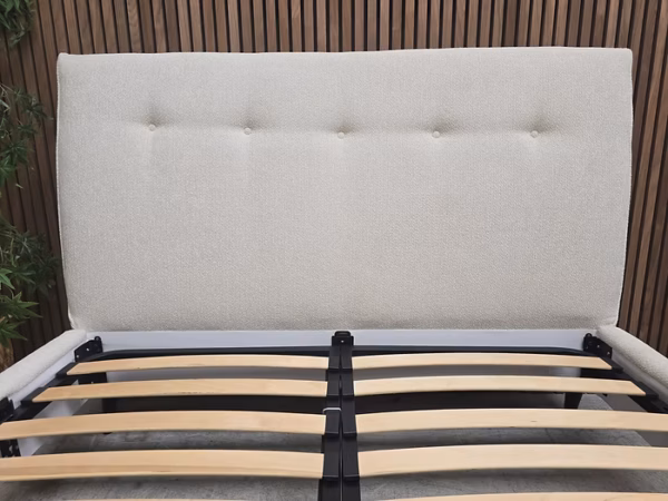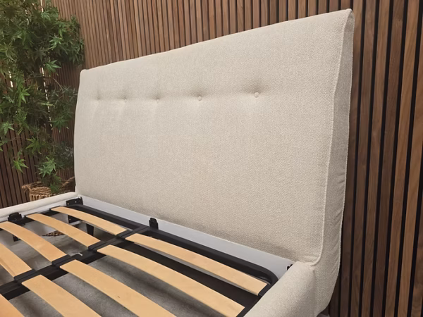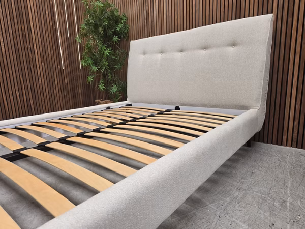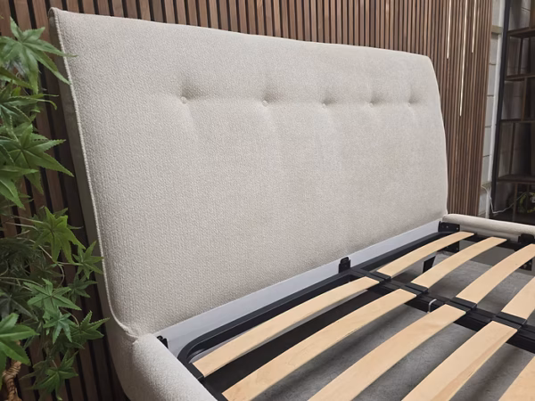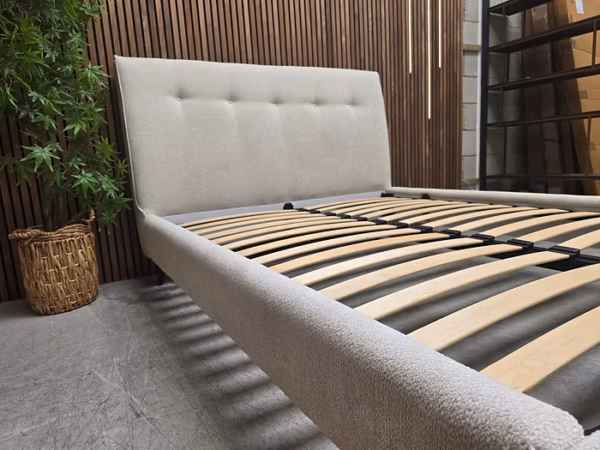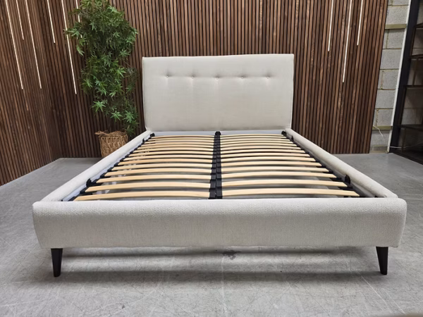 Designer Label Zinc Retro Modern Kingsize Bed Frame In Natural Boucle RRP-£1099