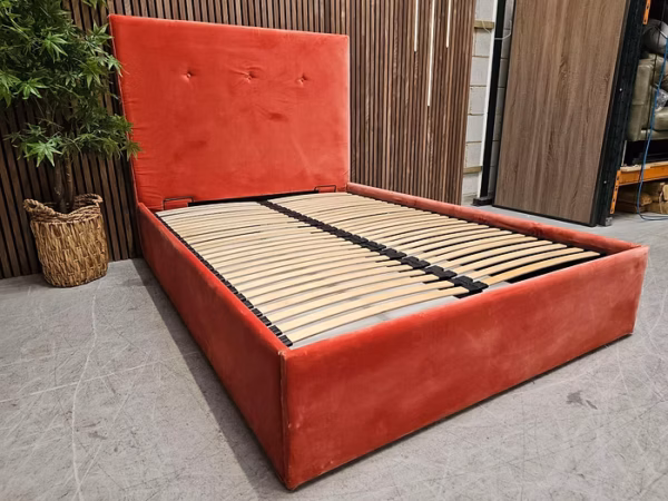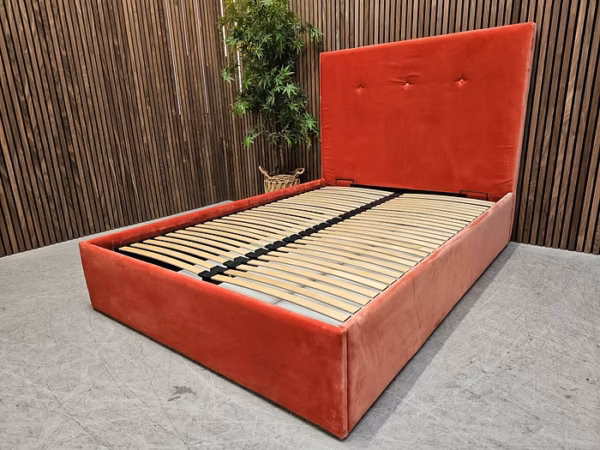 Sofa.com Avery 130cm Double Ottoman Bed Frame In Dusty Rose Cotton Matt Velvet RRP-£1780