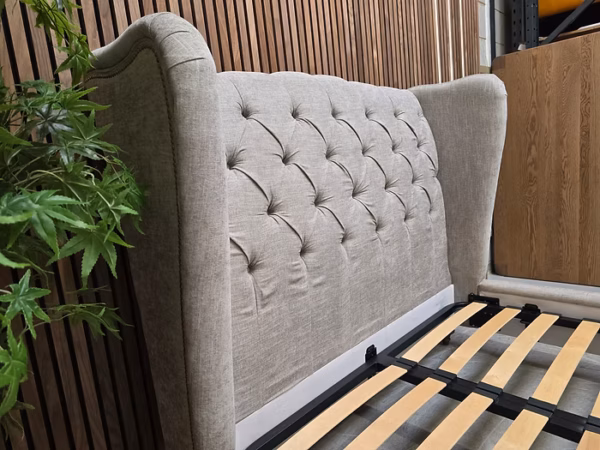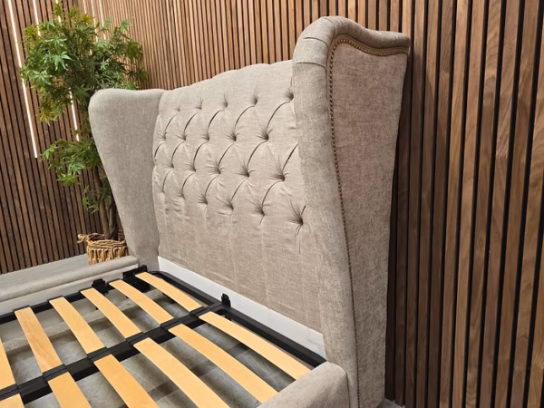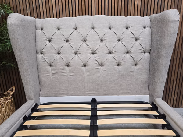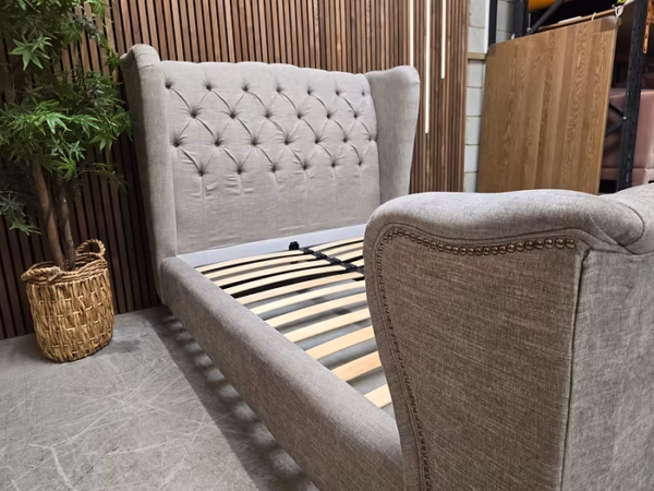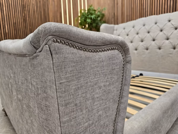 Sussex Buttoned Wingback High End Double Bed Frame In Zenith Silver RRP-£1299