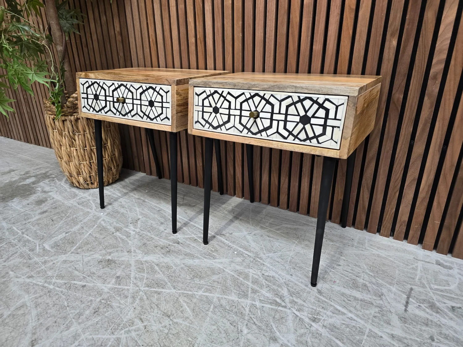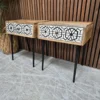 2x Mango Wood & Abstract Bone Inlay Bedside Tables