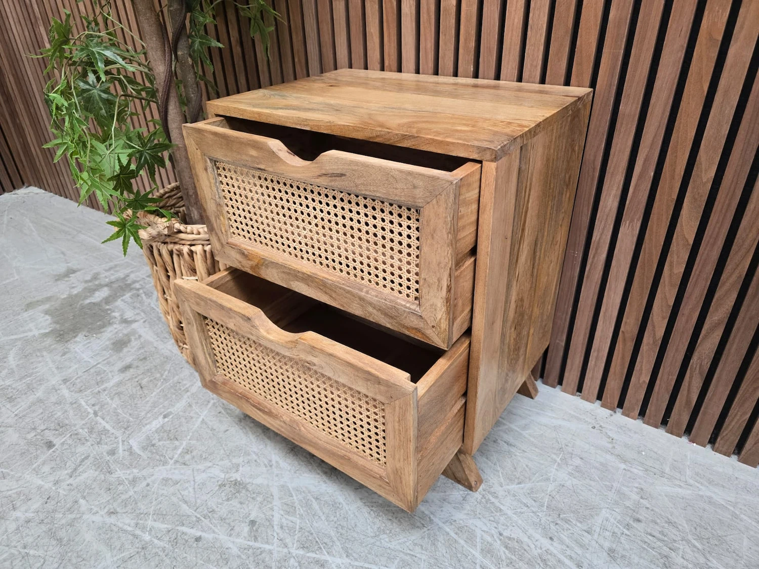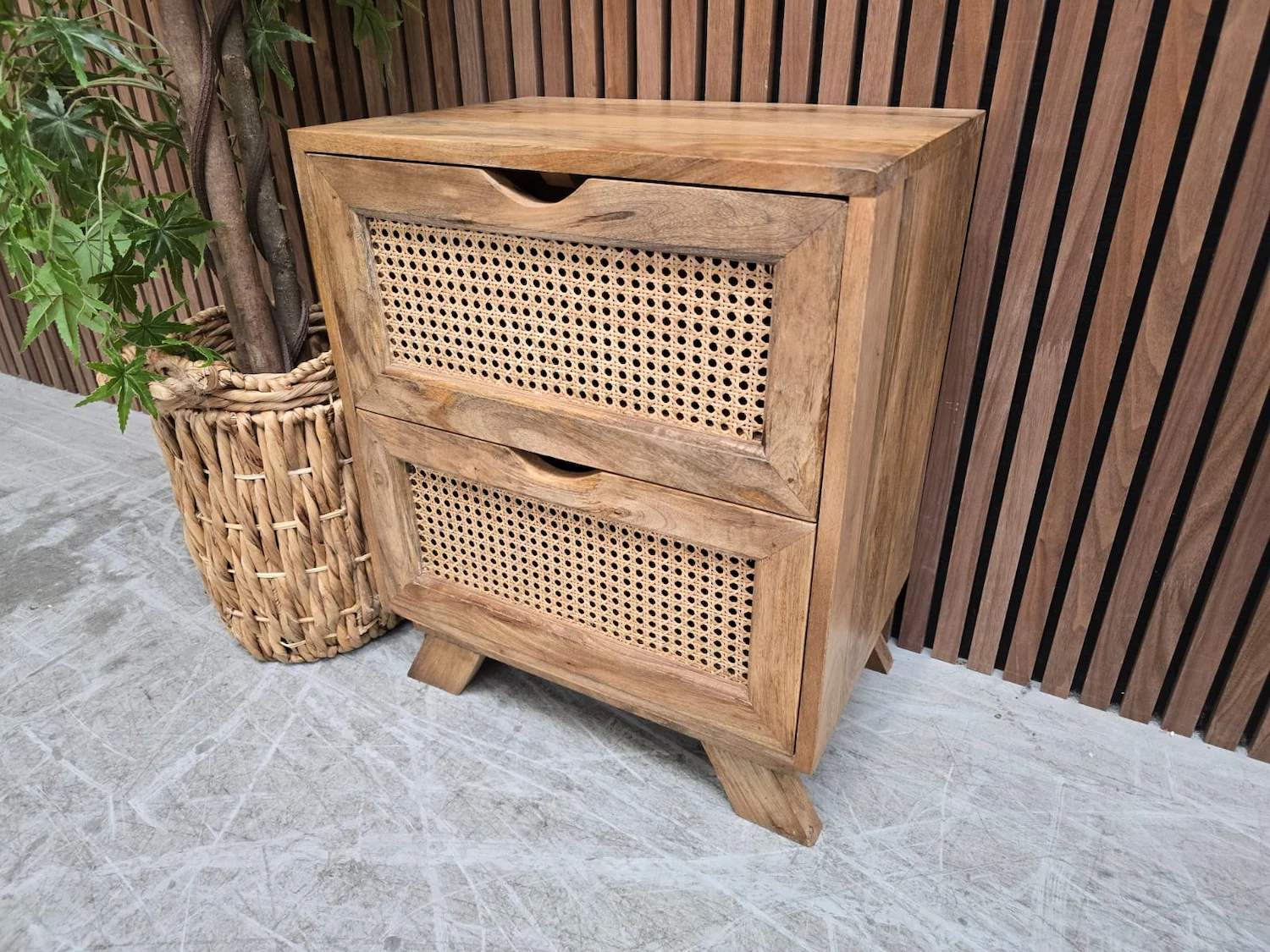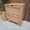 Boho Rustic Mango Wood & Rattan 2 Drawer Bedside Table