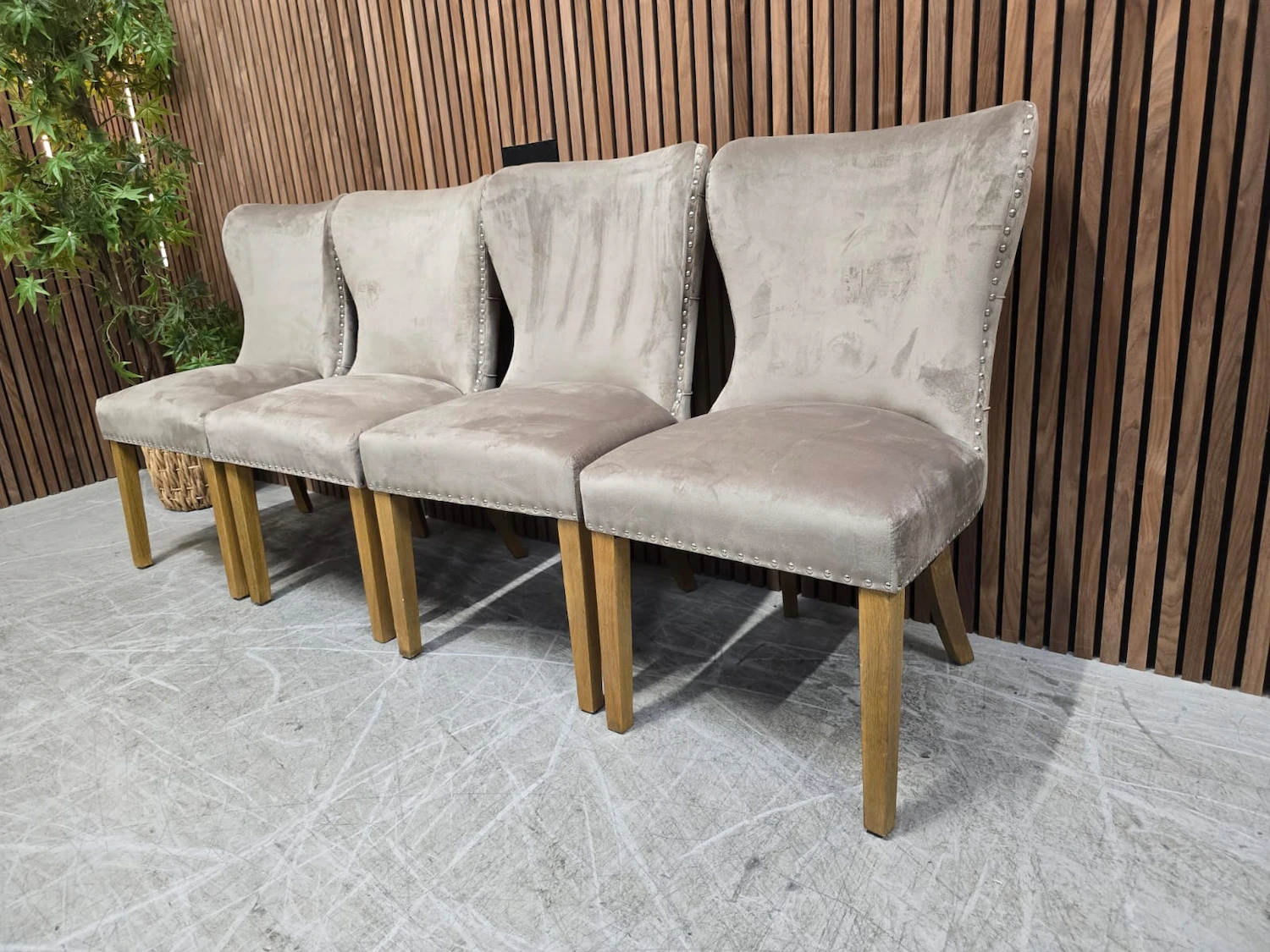 4x FV Chennai Taupe Velvet Dining Chairs With Buttoned Backs RRP-£1199