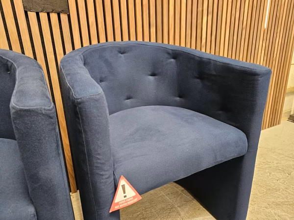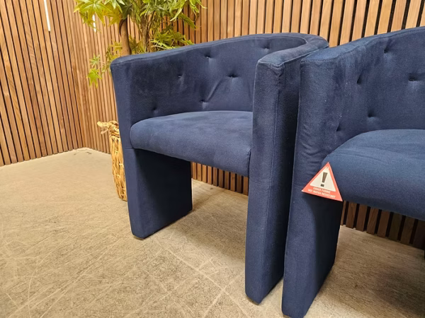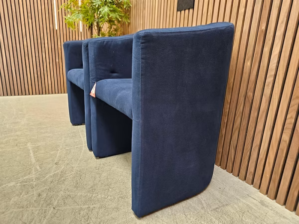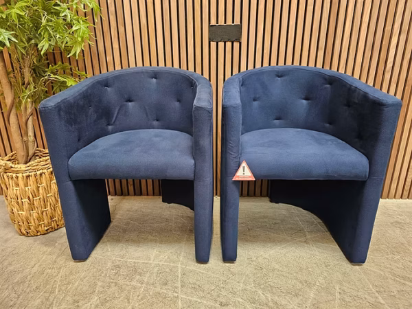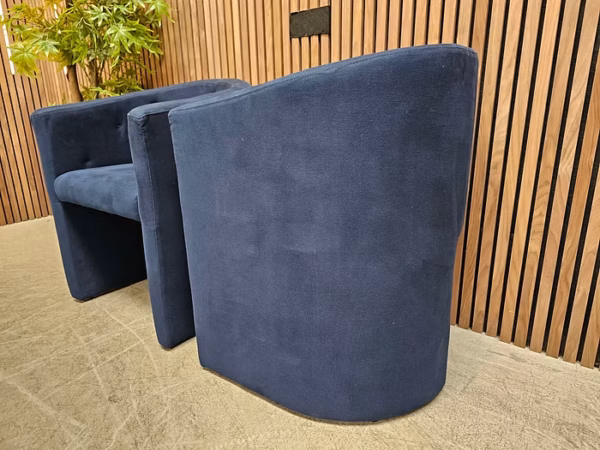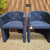 2x Designer Curved Swivel Chairs In Blue Fabric RRP-£1098