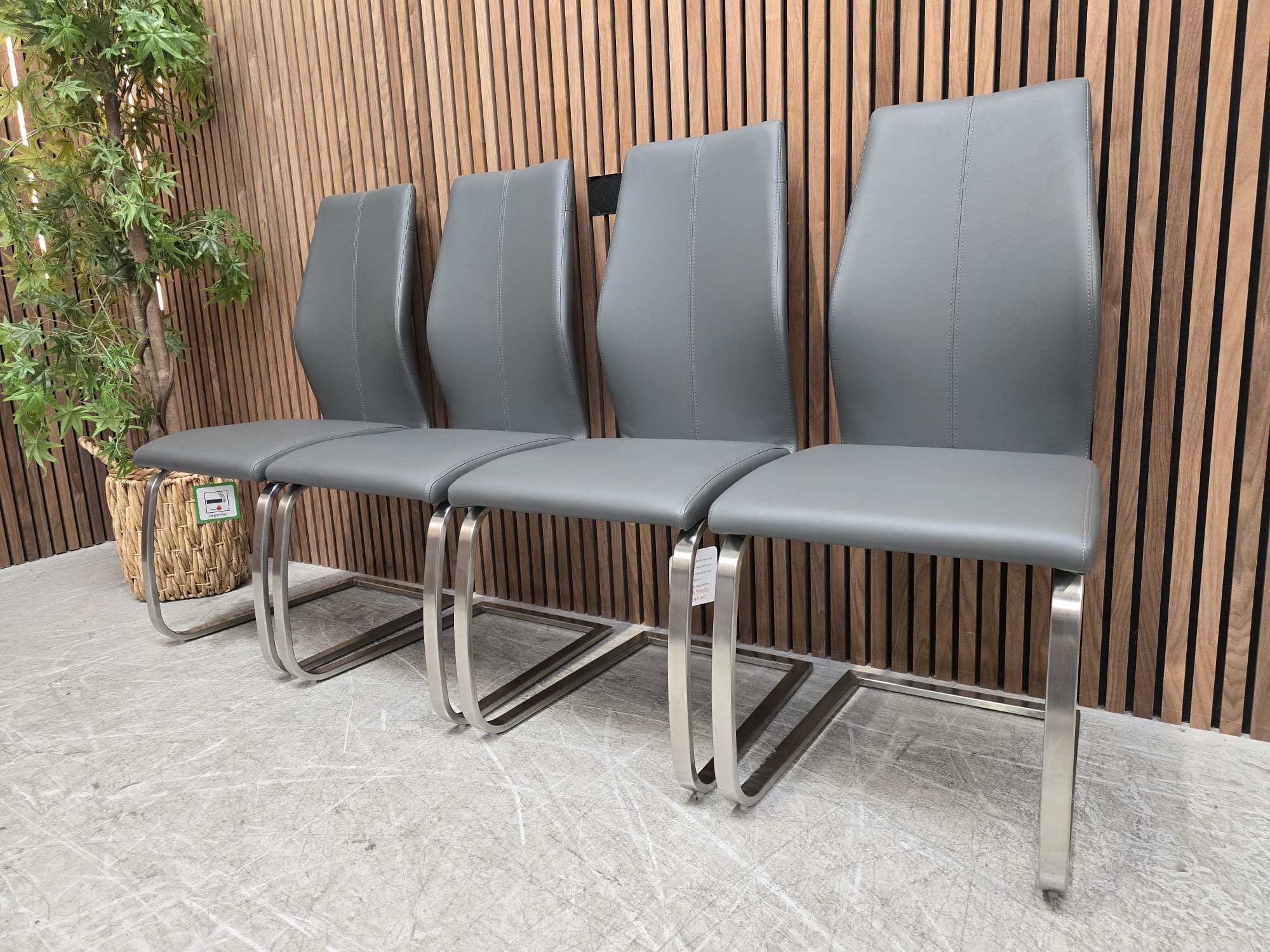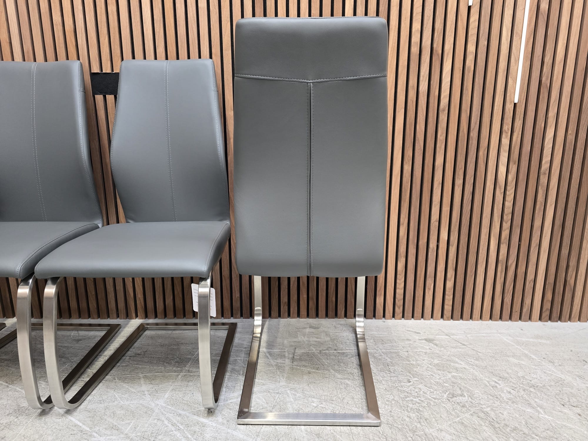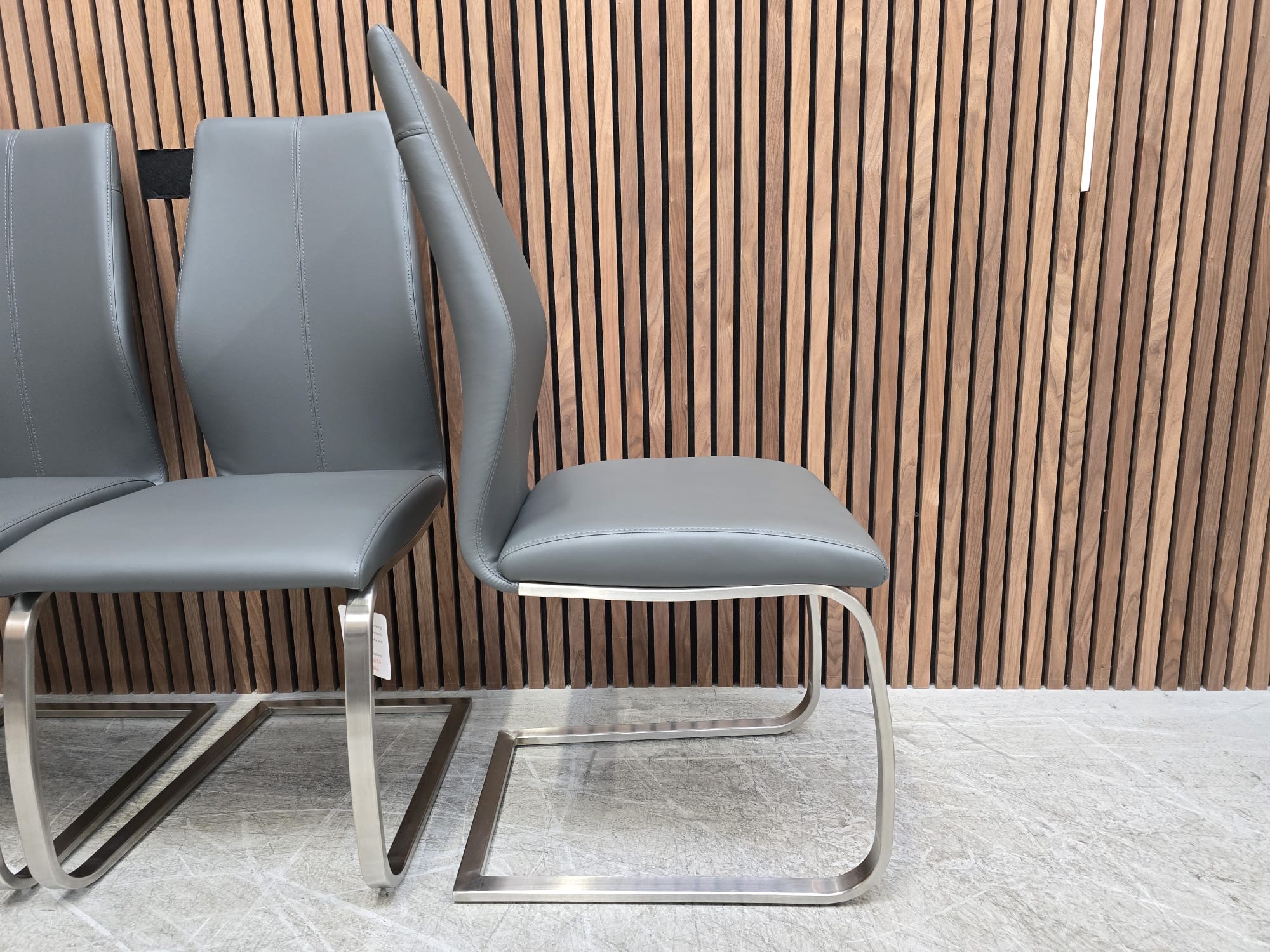 4x India Faux Leather Grey Dining Chairs With Brushed Steel Legs RRP-£720