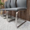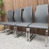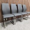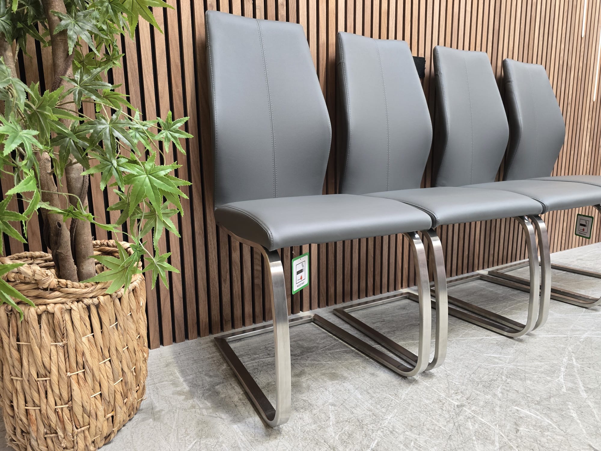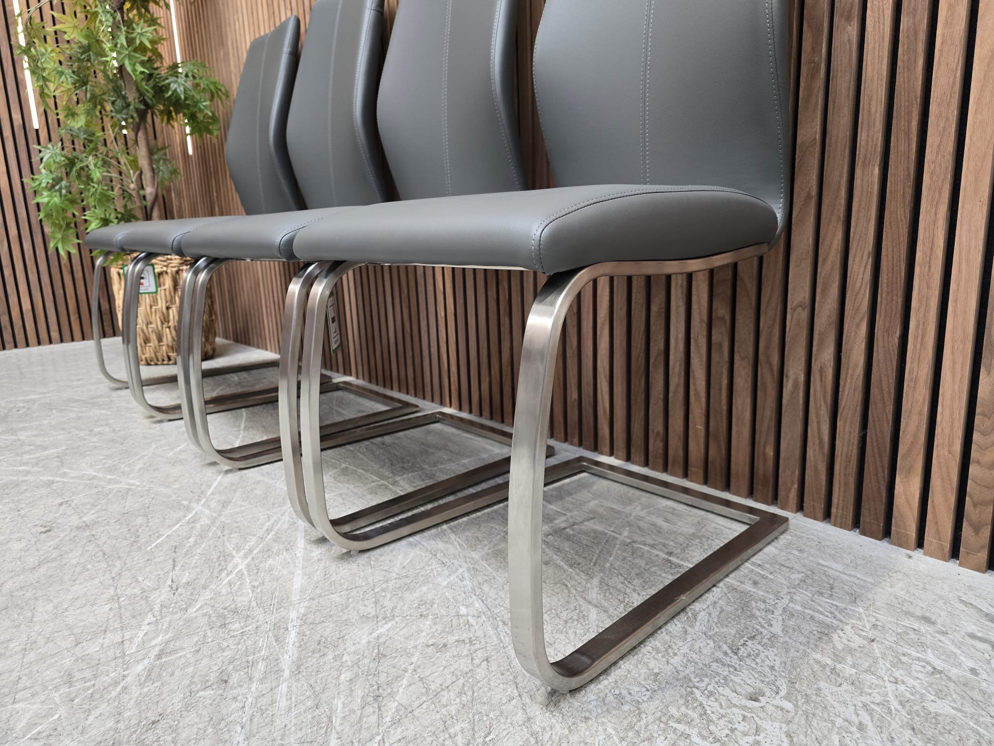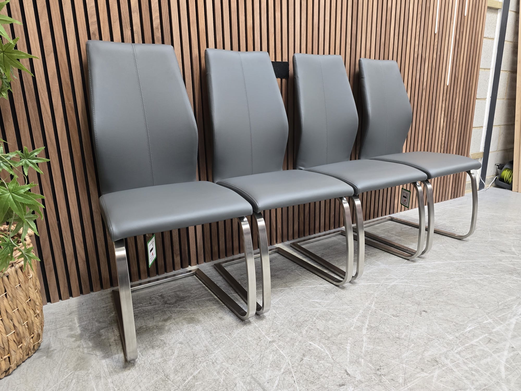 4x India Faux Leather Grey Dining Chairs With Brushed Steel Legs RRP-£720