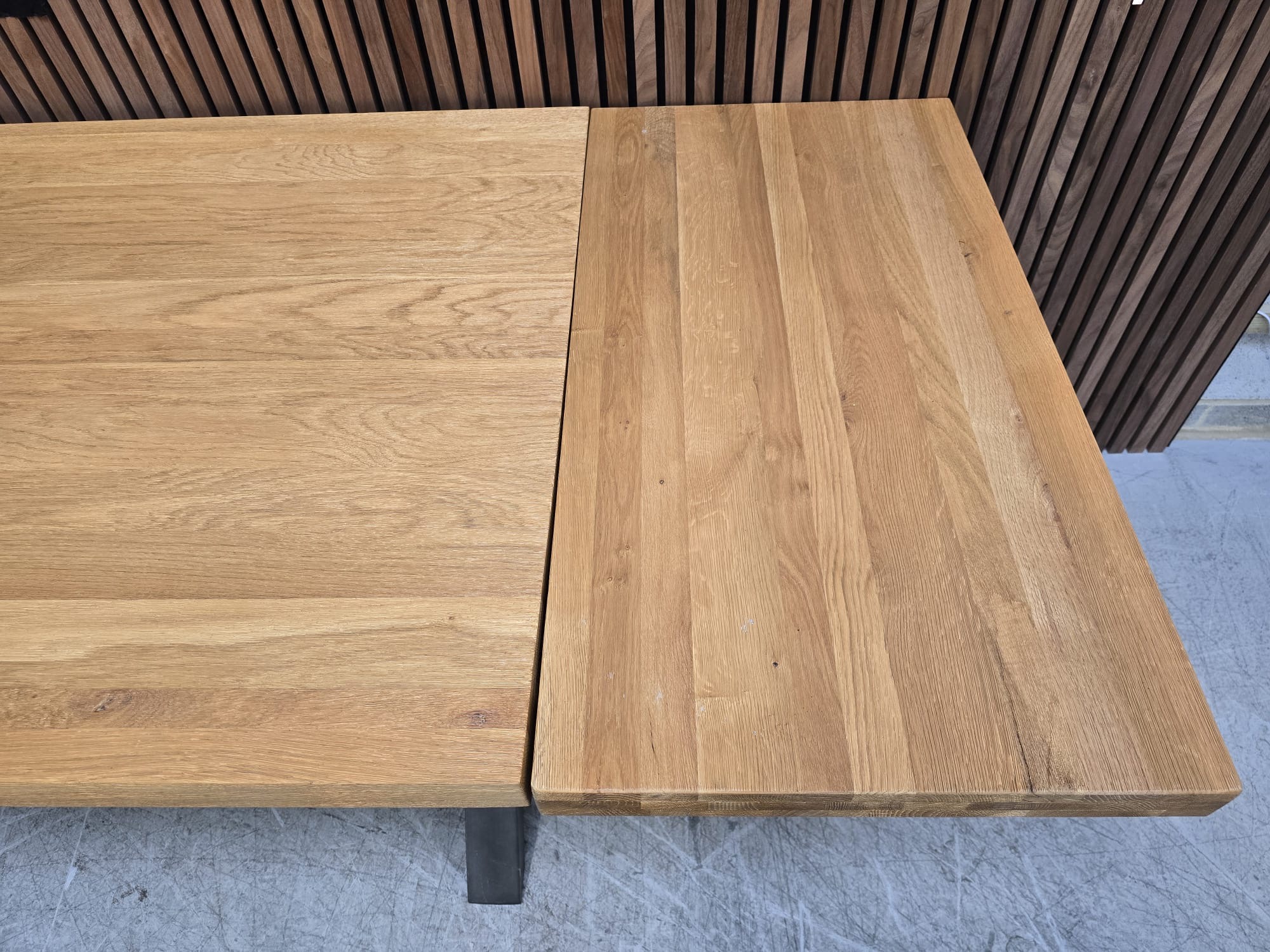 Contemporary Industrial-Style Dining Table With An Elegant Edge Make A Design Statement In Your Dining Room With This Cool And Contemporary Dining. It Showcases Fabulous Industrial Style With A Rather Elegant Edge. It’s Made With Oak Veneers, Stained In A Rich Dark Tone And Finished With Well-Crafted Angled Edges.
