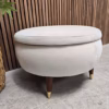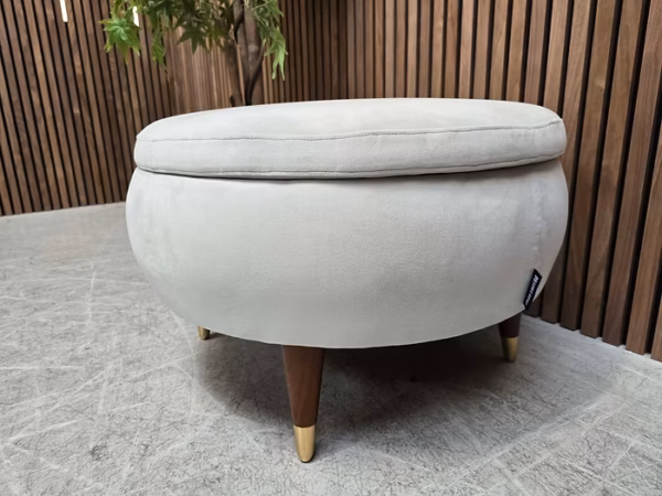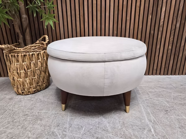 The Down to Earth Fabric Storage Footstool Features a Unique & Eye-Catching Design Element —The Scalloped Edges & Cleverly Hidden Storage In The Footstool. To Add a Final Touch of Refinement, The Footstool Is Supported By Beautiful Walnut Legs, Delicately Tipped With Brass.