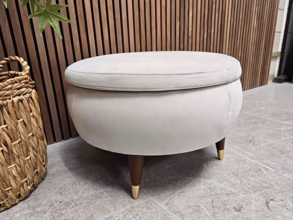 Paloma Home Down to Earth Round Storage Footstool In Plush Silver RRP-£446