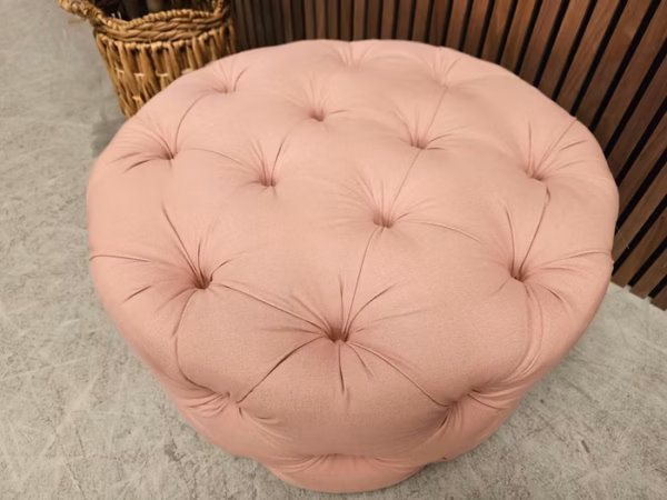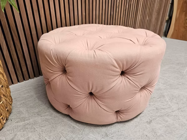 Sofa.com Georgette Round Buttoned Footstool In Rhubarb Smart Cotton RRP-£640 X2