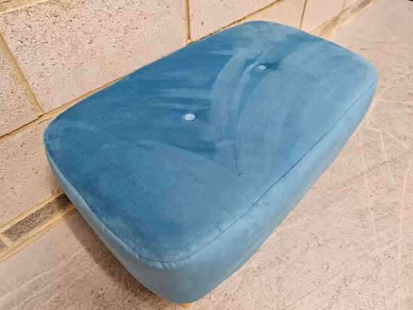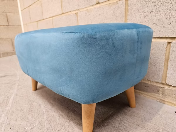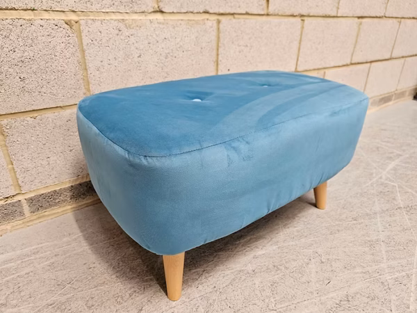The Lisbon Designer Footstool Is Scandi Inspired, Retro Design Has a Distinctive Rounded Silhouette With Buttoned Top & Angled Legs.