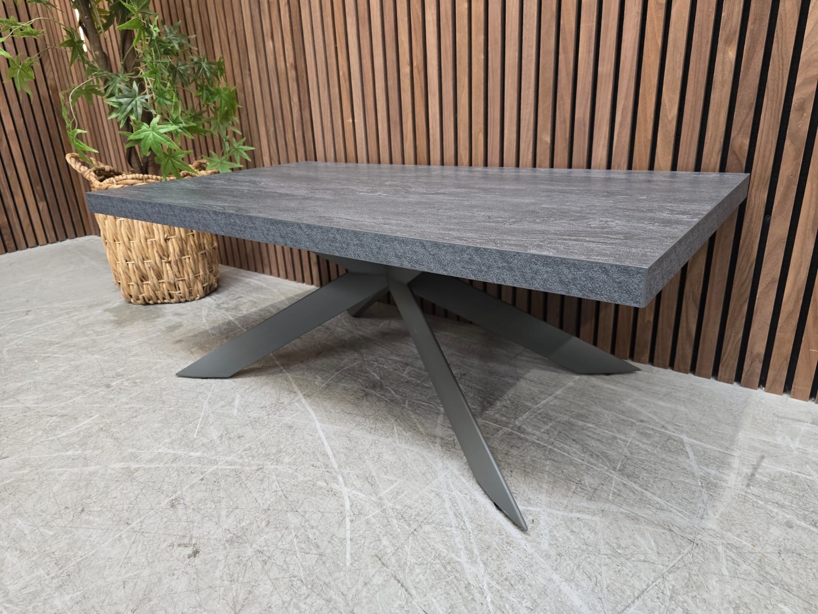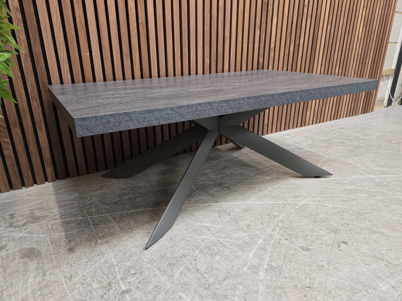 Add A Touch Of Quirk To Your Home With The Bari Coffee Table. This Table Features A Dark Rhine Colour Melamine Top And Sturdy Rough Powder Legs In Dark Grey. Enjoy Your Morning Coffee Or Host A Game Night On This Unique Stylish Table.