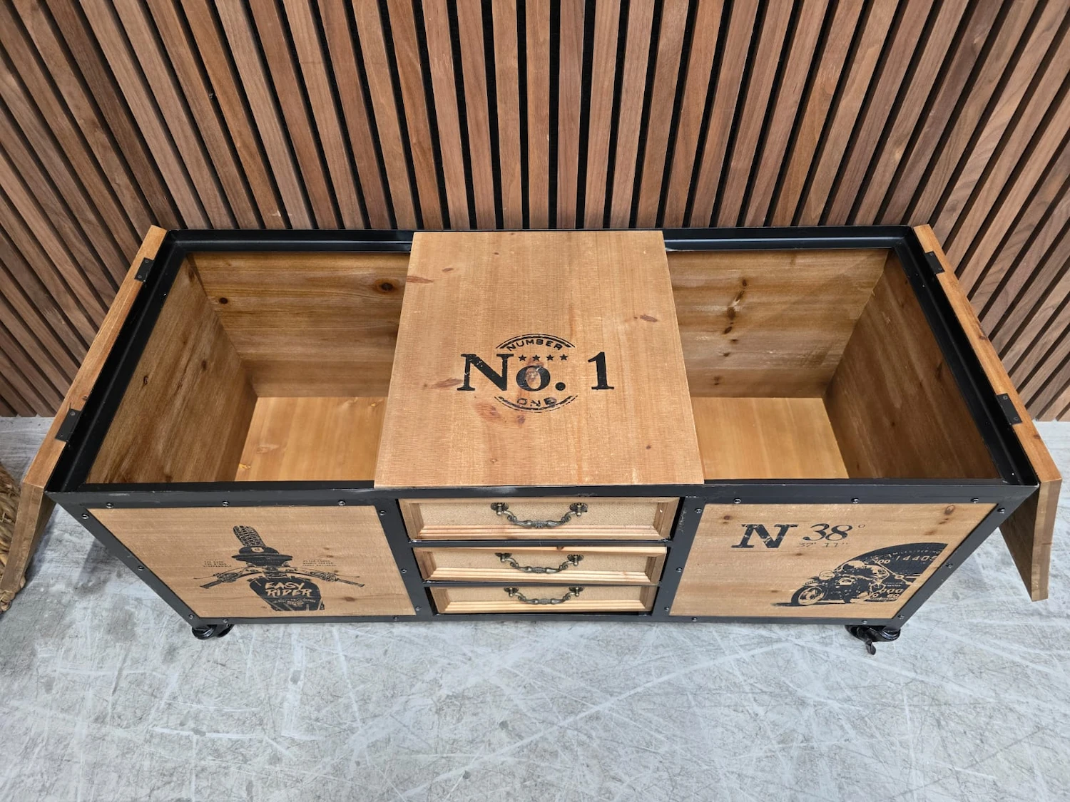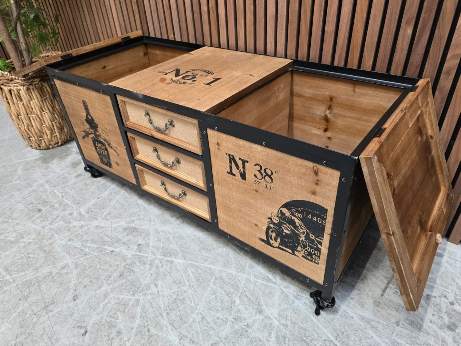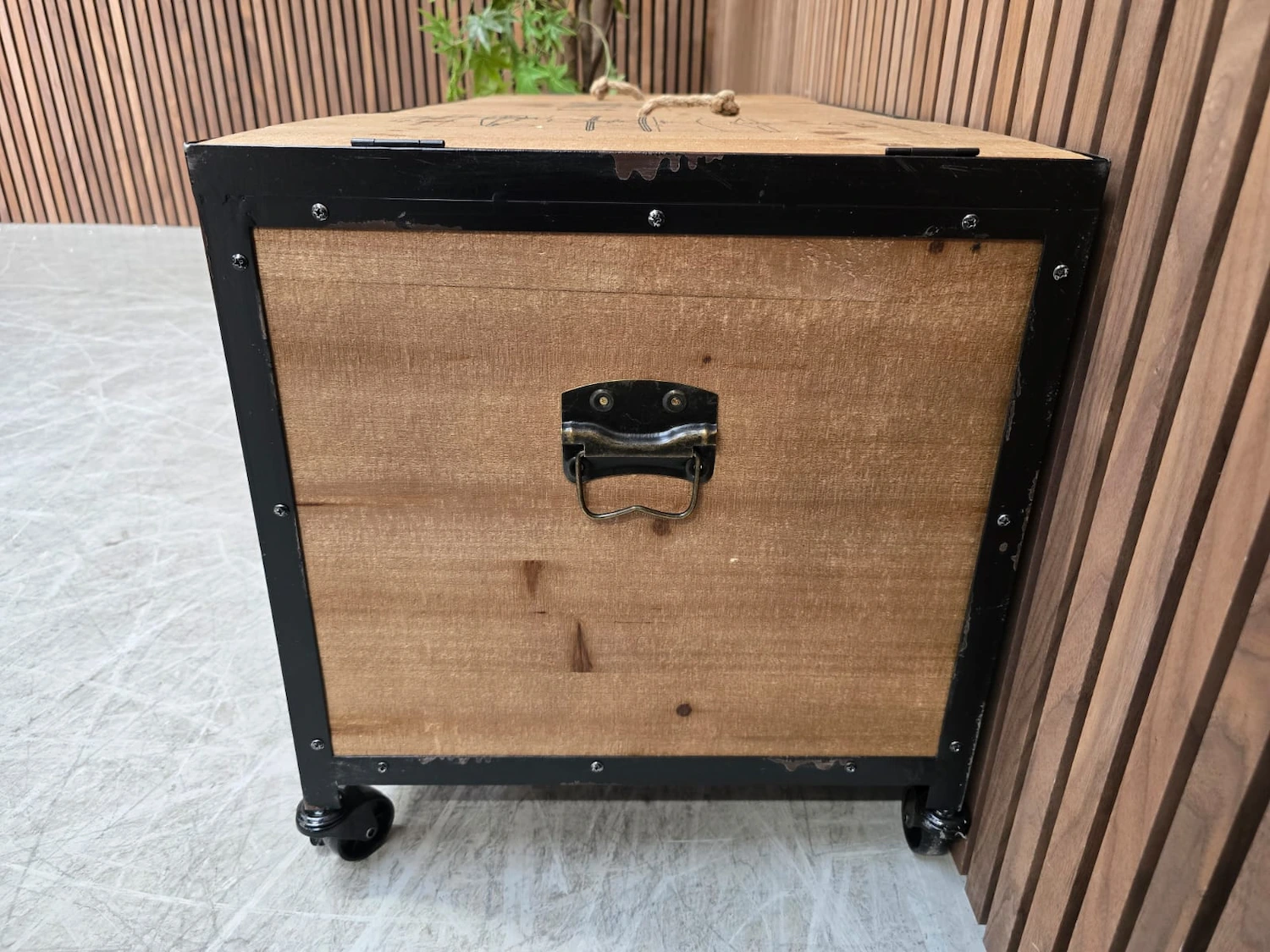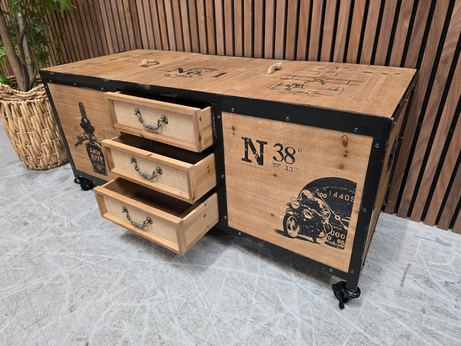 Industrial Rustic Fir Wood Trunk Storage Cabinet on Wheels