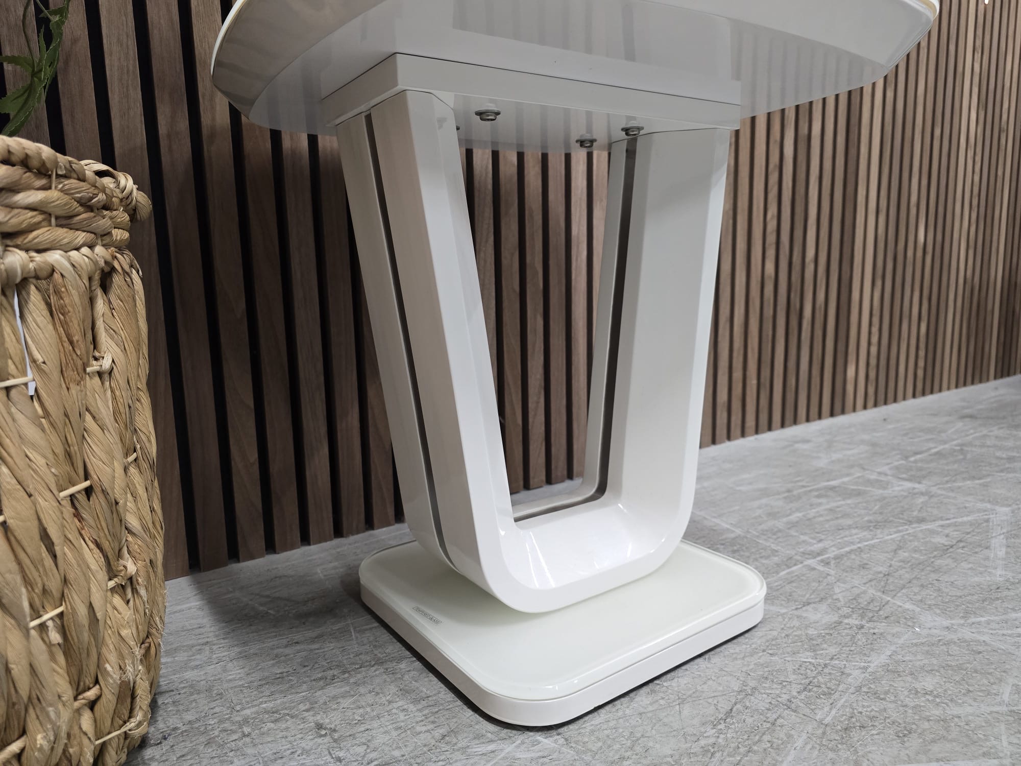 Here’s The Perfect Modern Lamp Table For A Compact Living Room. With Its High-Gloss Finish, Glass Top And Pedestal Base, It’s So Striking. Amazing Value Too.