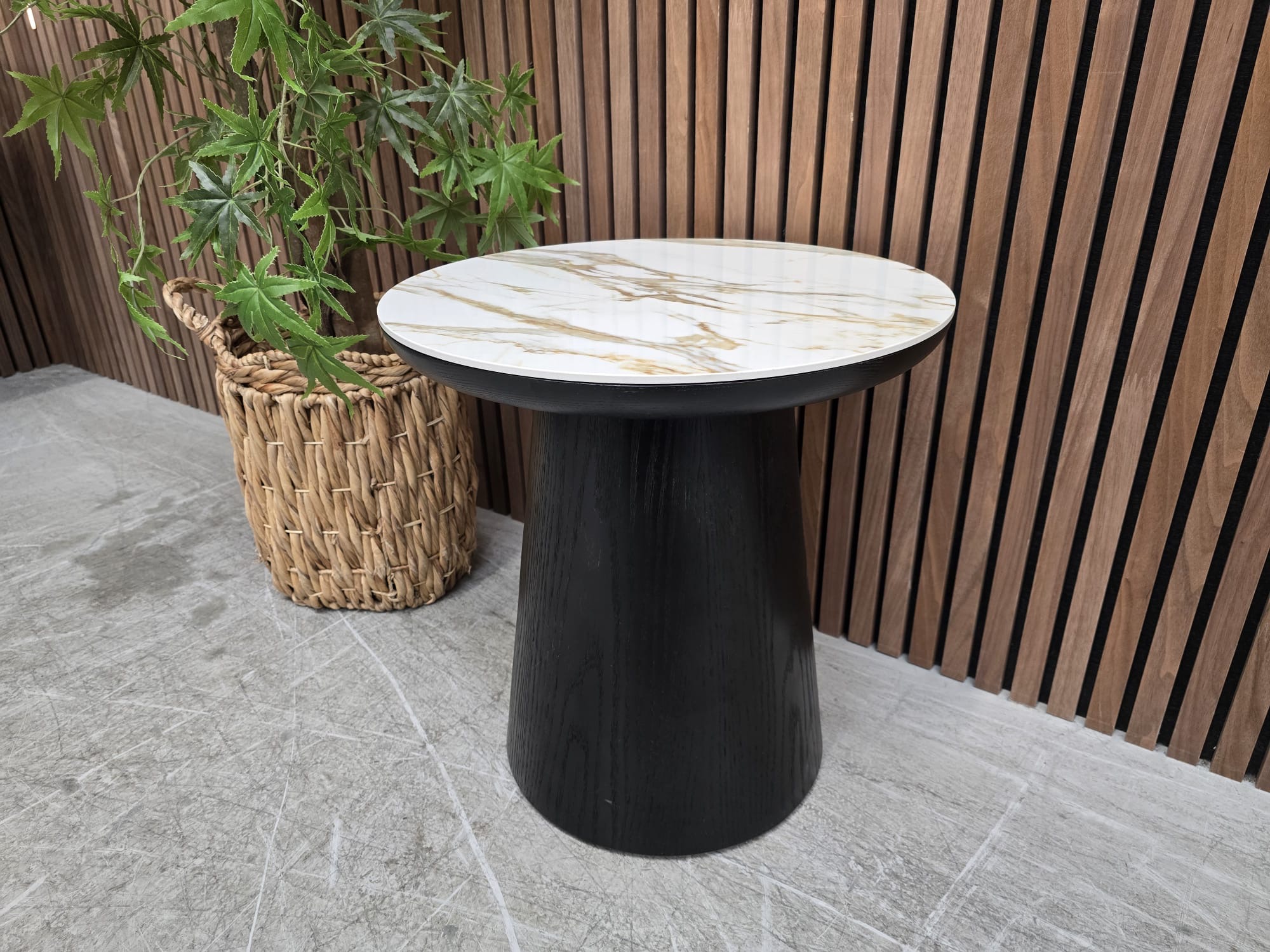 Nick Scali Allegria Side Table In Smoked Oak With Marble Ceramic Top