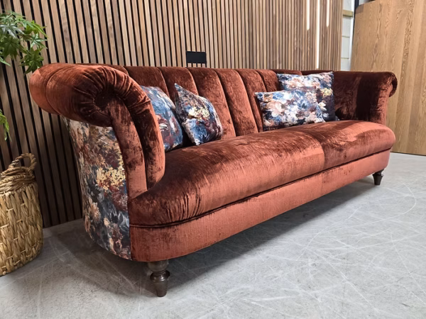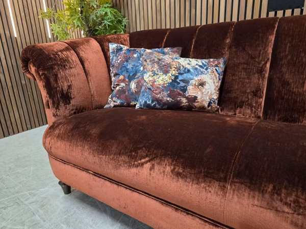 The Carmen Promises To Take Centre Stage In Any Interior Space, With Elegant Scrolled Arms & An Intricately Fluted Back. The Fixed Seat Is Serpentine Sprung With a Superloop Back For Supreme Comfort. This Collection Is is a Contemporary Take On The Classic Chesterfield Design.