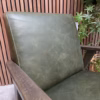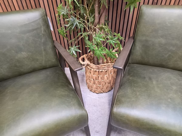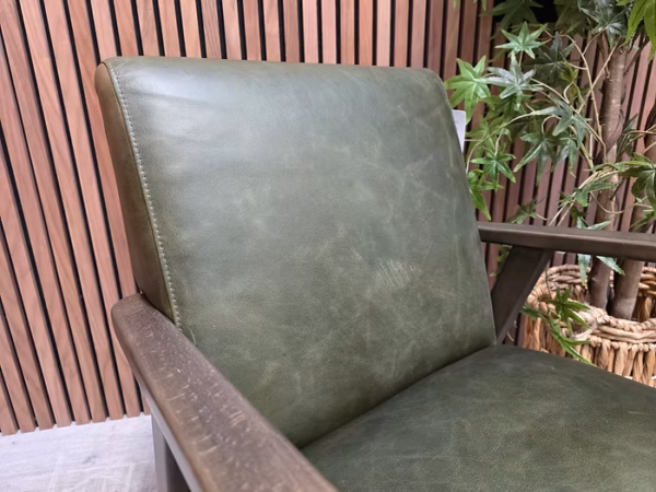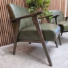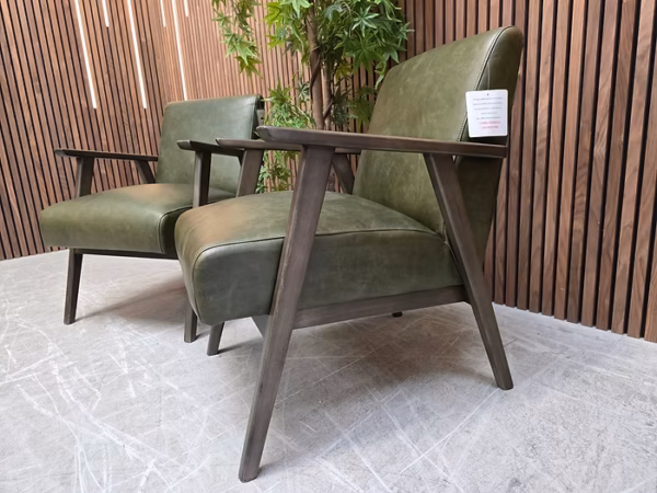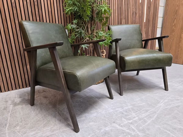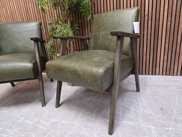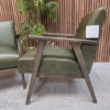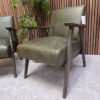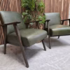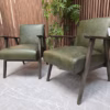 2x Mid Century Modern Heritage Green Leather & Wooden Armchair