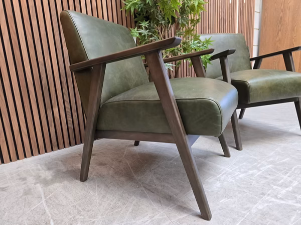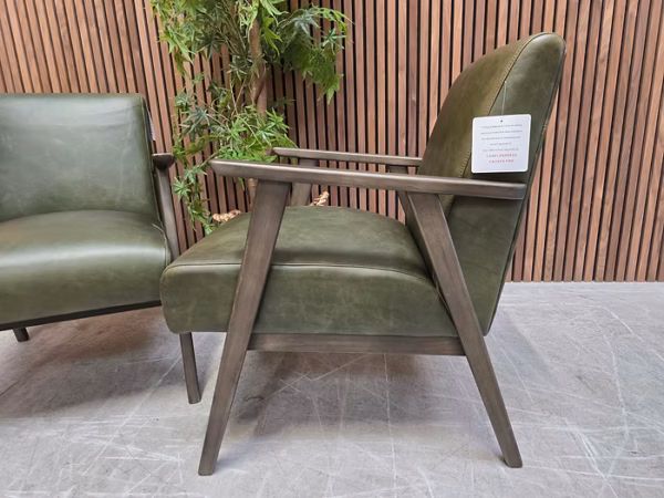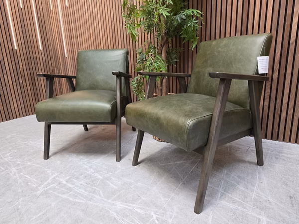 Classic Mid-Century Inspired Armchairs Finished In a Beautiful Heritage Green Leather. This Is a Chair To Suit Any Interior Décor.
