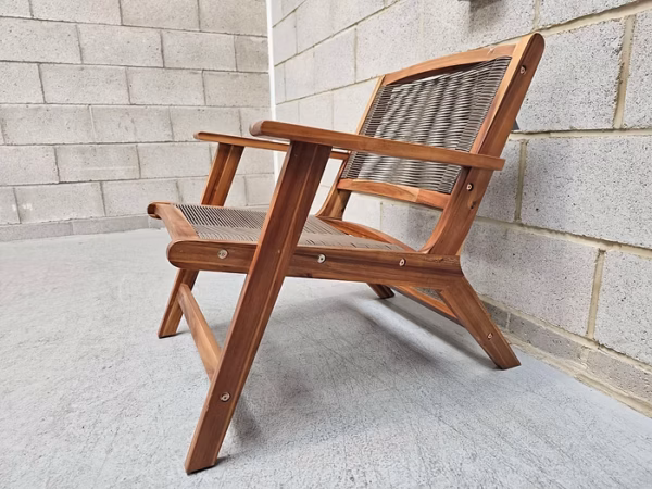 Acacia Wooden & Synthetic Woven Rattan Outdoor Armchair