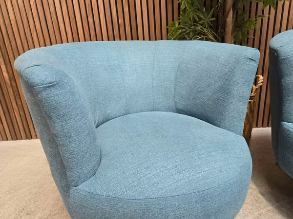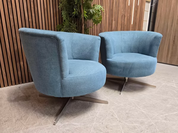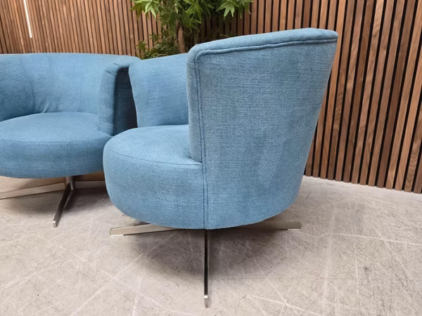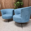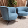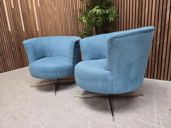 Designer Curved Swivel Chairs In Blue Fabric RRP-£1098