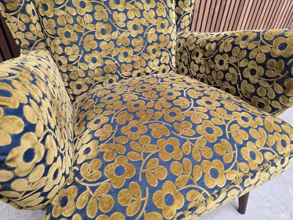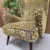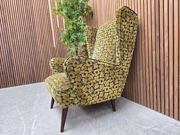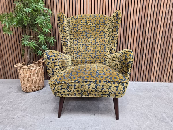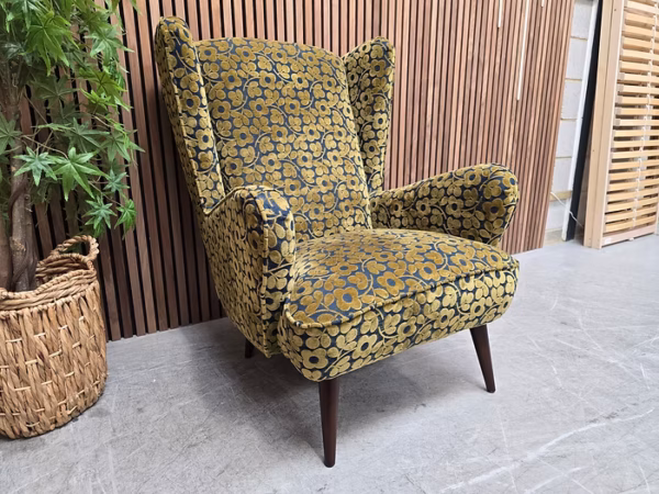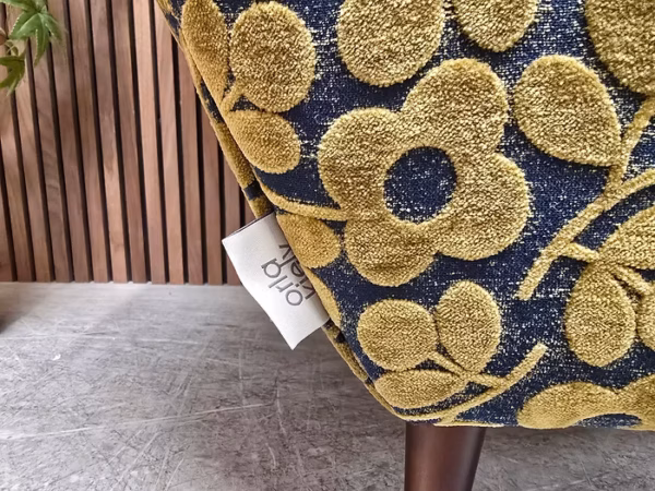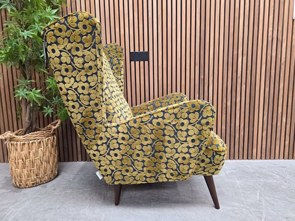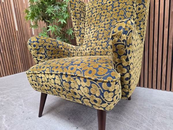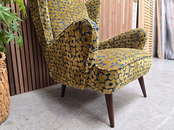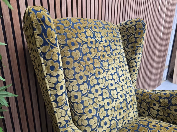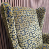 The New Alma Armchair From a Well Known Designer Has a Classic Vintage Design Heritage With Softly Curved Arms & Wingback Sides. This Statement Accent Chair Is Available In a Gorgeous Signature ‘Spring Stem Marine’ Printed Lining Cloth, A Real Eye Catching Piece of Furniture.