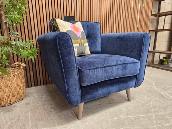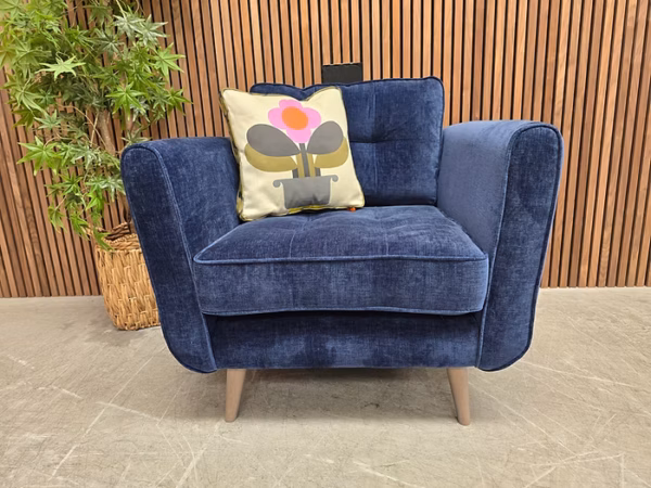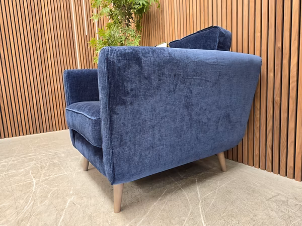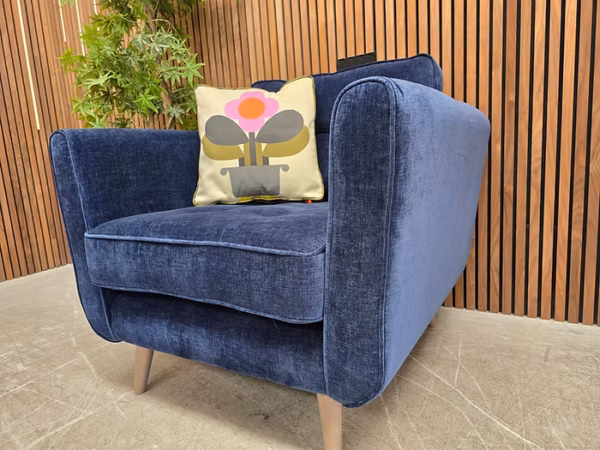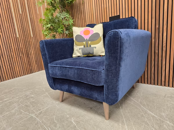 Designer Label Ivy Small Mid Century Modern Armchair In Derry Indigo RRP-£899