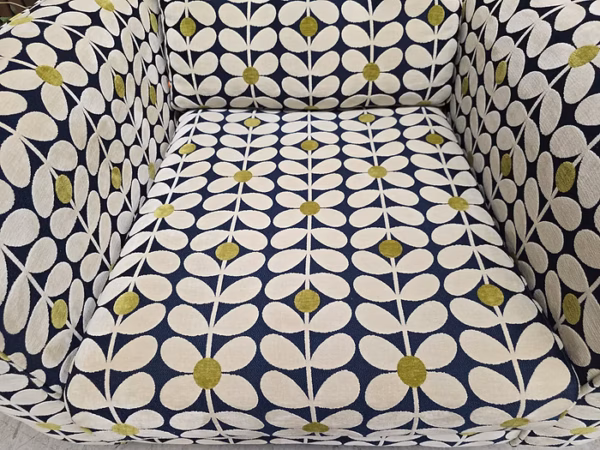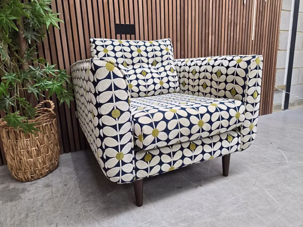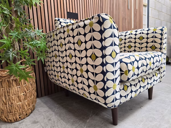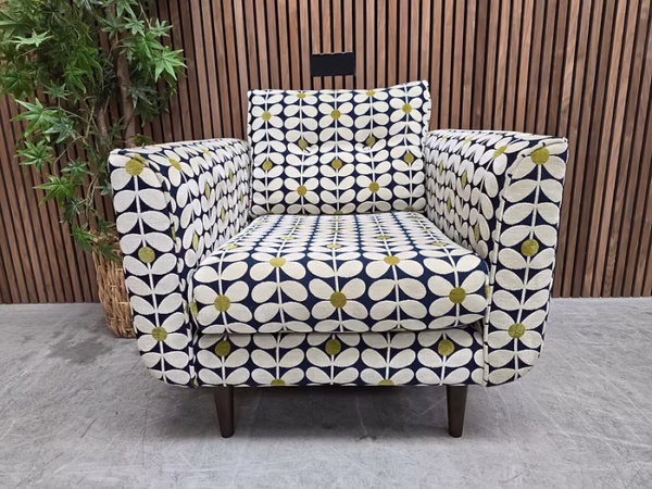 Designer Label Linden Armchair In Blue/White Sixties Stem Jewel Pattern RRP-£899
