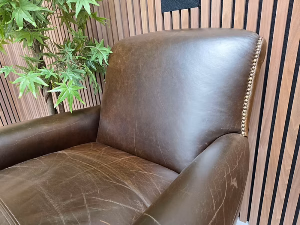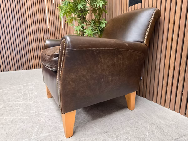 Next Vintage Genuine Distressed Dark Brown Leather Armchair