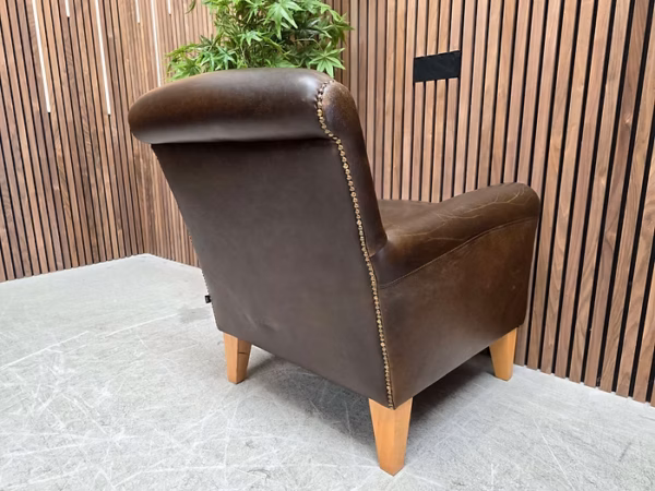 This Timeless Studded Armchair Is Ideal For a Family Room, Living Room or Study. The Beautiful Combination of Distressed Leather, Oak Wooden Feet & Detailed Studs Adds Charm & Character to This Natural Product.