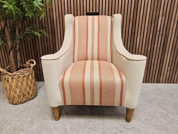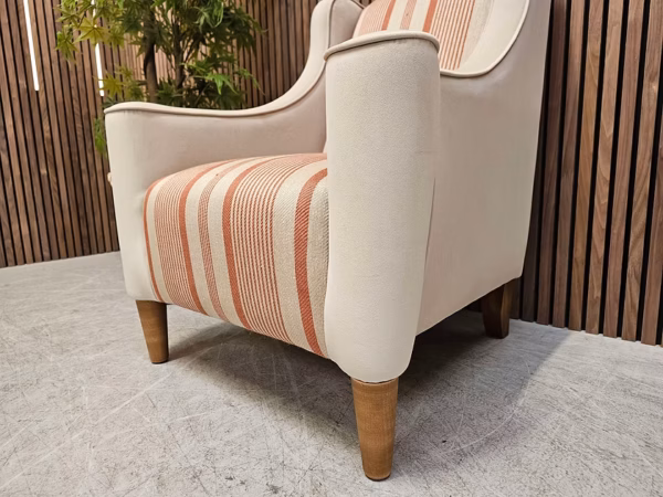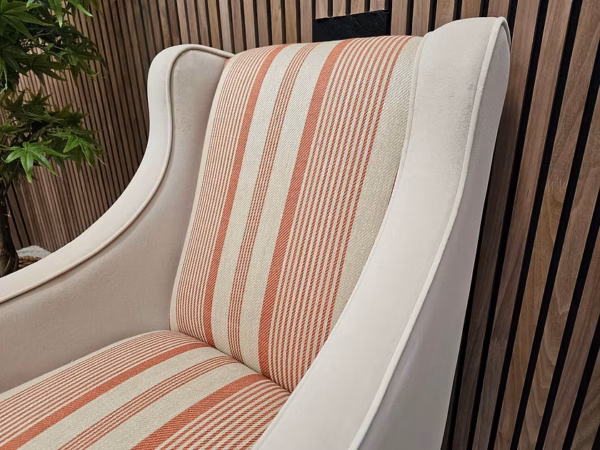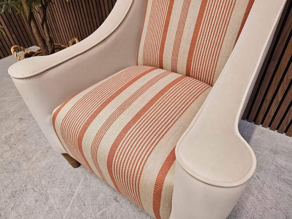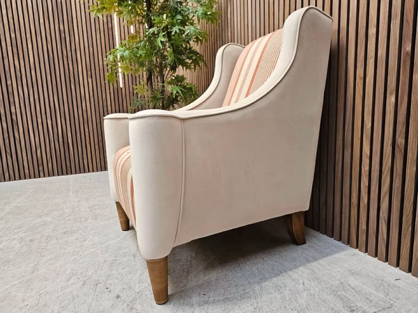 Sofas & Stuff Sennen Regency Armchair In Cream Velvet & Mulberry Stripe Linen