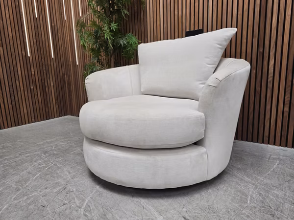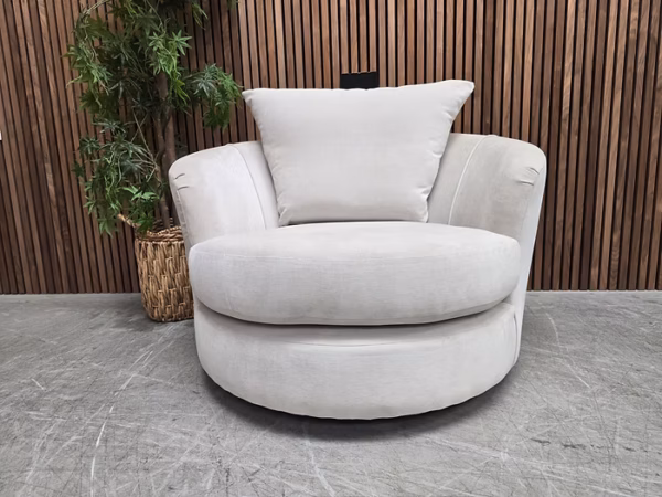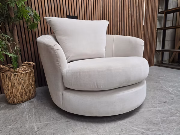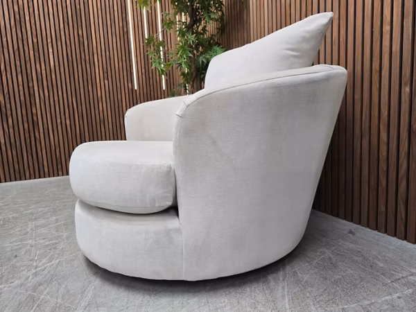 The Swivel Cuddle Chair Is The Perfect Accompaniment To This British Made Range. It’s Timeless Design Features a Round Seat With Elegantly Tapered Arms & a Sumptuous Chenille Finish. Deep Cushions Invite You to Lounge & Relax In This Swivel Chair.