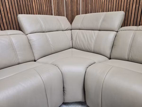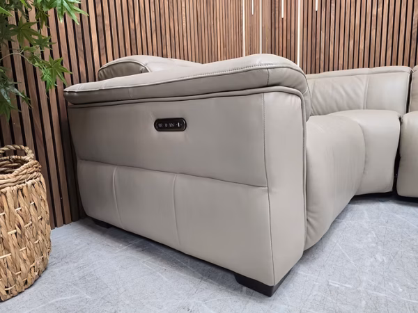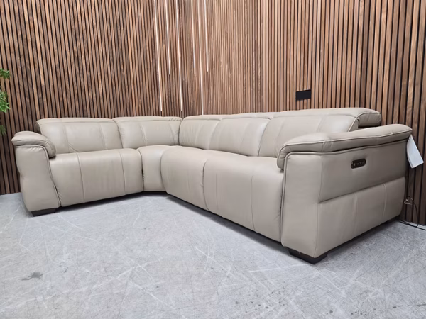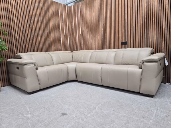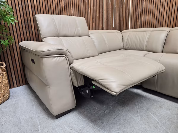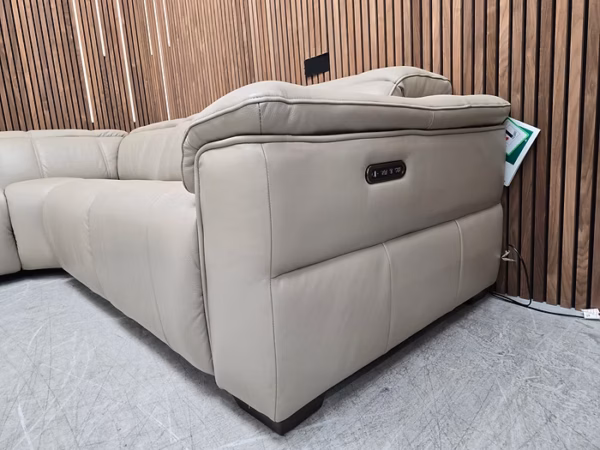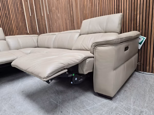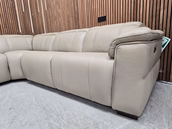 FV Inca LHF Large Double Power Recliner Corner Sofa With Power Headrest In Oyster Leather RRP-£3995