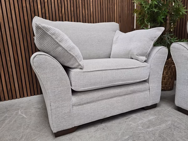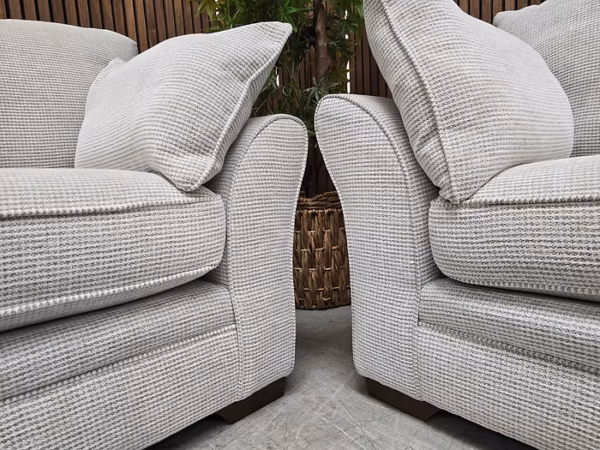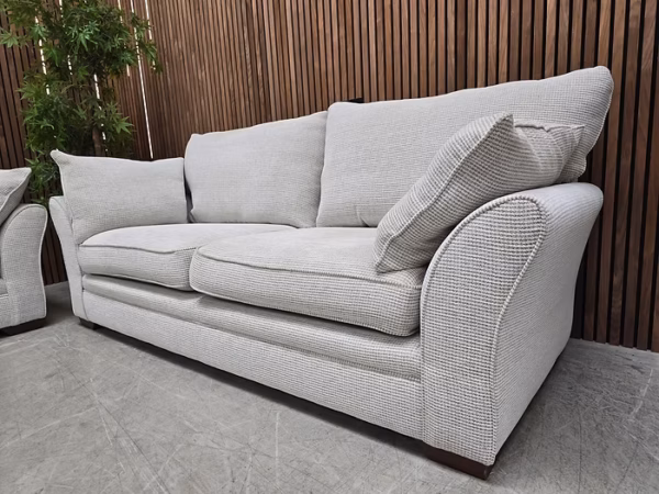 An Exciting Addition to Our Transitional Range of Designs Within Our Stock. The Aesthetic of The Design Creates a Softer Overall Appearance, Again Characterised By Soft Feather Filled Arm Cushions Which Rest Against a Lower More Rounded Arm Profile. With The Combination of Winning Fabrics & Comfort It Is Easy to See Why This Model Is In Demand.