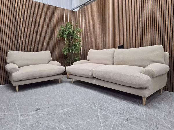 Designer Label Dawdler Large Sofa & Loveseat In Seeded Sourdough Clever Boucle RRP-£5290