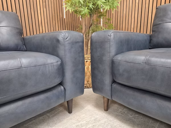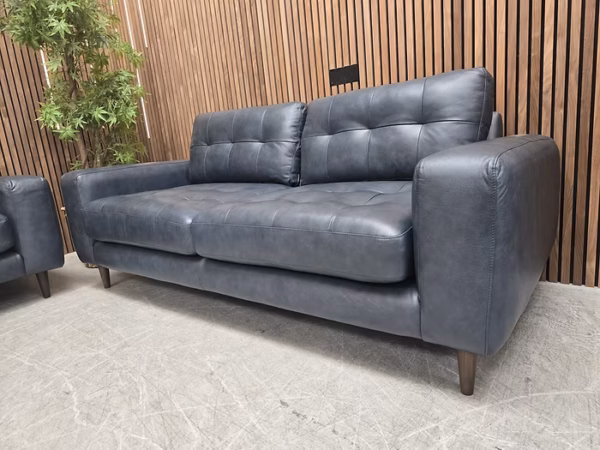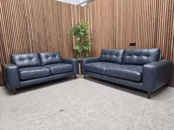 Designer Label Kora Large & Small Sofa In Blue Leather RRP-£3658