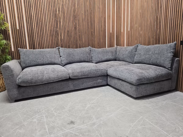Designer Label Large RHF Corner Sofa In Tabby Platinum RRP-£1999