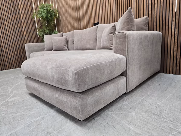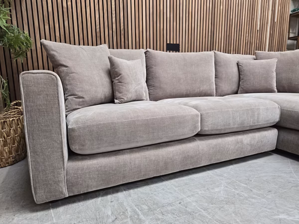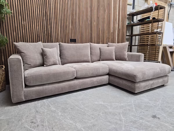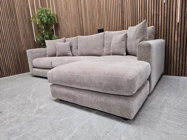 Designer Label Majestica RHF Chaise Sofa In Latte Chenille RRP-£1999