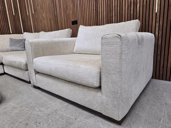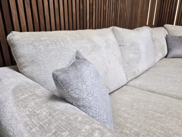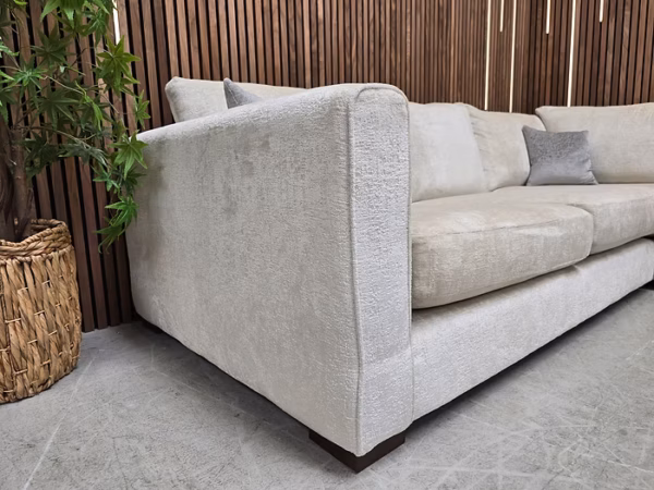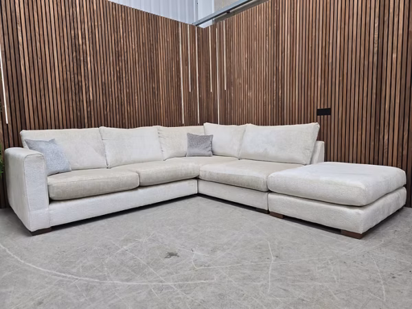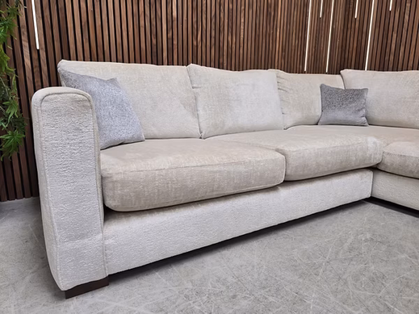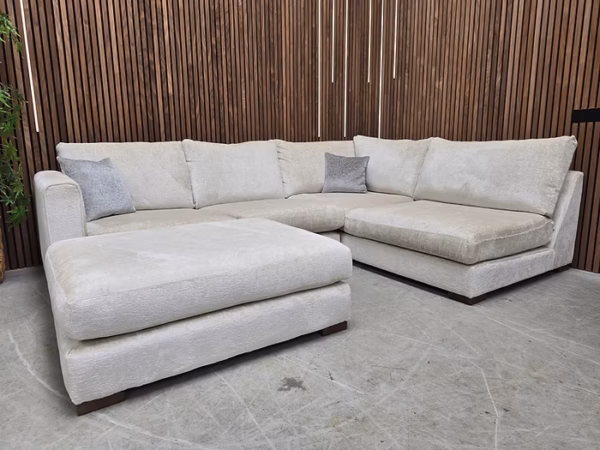 Designer Label Majestica RHF Small Corner Sofa, Loveseat & Footstool In Oyster Chenille RRP-£3298