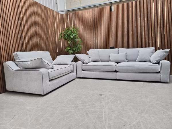 Designer Label Manhattan Large 4 Seater Split Sofa & Loveseat In Harlem Silver RRP-£3248
