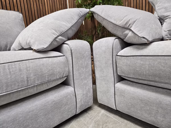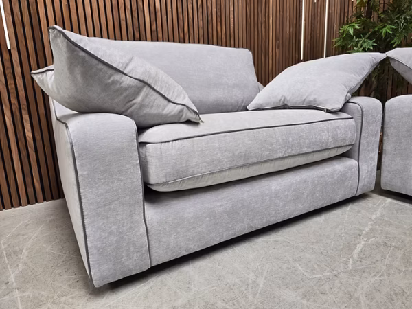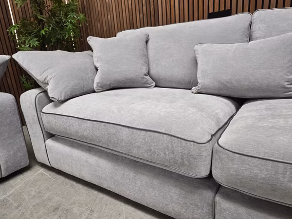 This Stunning New Range Forms Part of Our Comfort Collection For Good Reasons It’s Generously Proportioned & Designed To Make a Big Impression. With Elegantly Piped Arms & Cushions, & Upholstered In a Harlem Fabric, a Super Soft Fabric, This Model Radiates Decadence & Quality.
