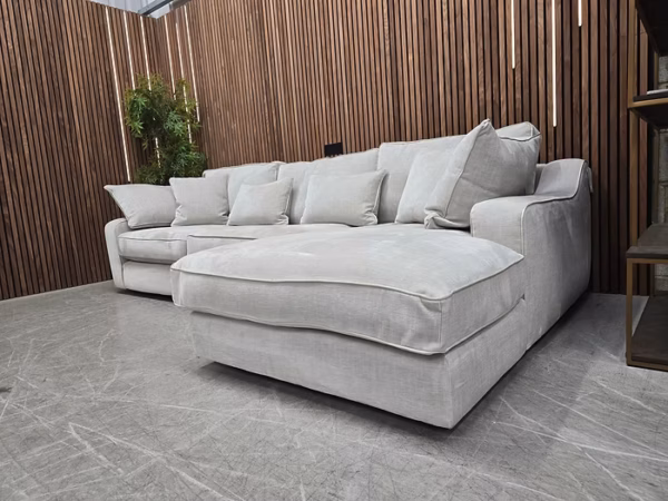 Designer Label Manhattan Large RHF Chaise Sofa In Zelda Oyster RRP-£2899