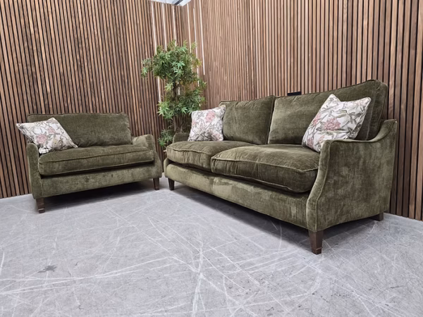 Designer Label Quarry English Heritage Sofa & Loveseat In Serpentine Distressed Chenille RRP-£3148