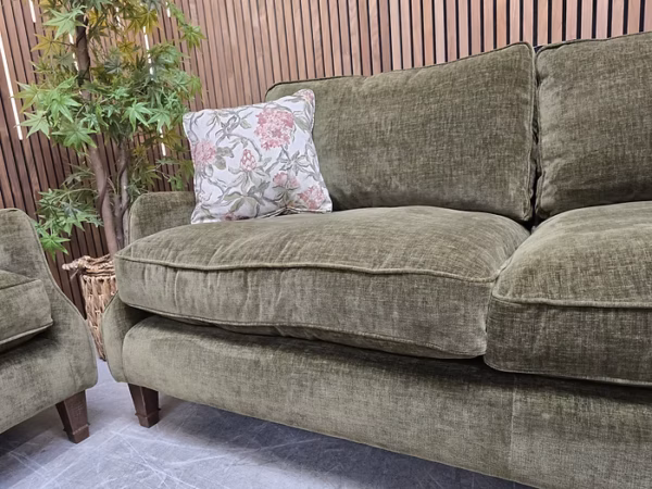 The Quarry Chenille Sofa Offers Timeless Sophistication And Exceptional Comfort. Featuring A Cut-Back Arm Design Accentuated By Sateen Piping, This Sofa Embodies A Tailored Aesthetic. Upholstered In Distressed Chenille Fabric With A Velvety Finish It Adds A Refined Touch To Any Room. With Elegant Legs. Its Generous Size Makes It Perfect For Lounging Or Entertaining In comfort And Class.