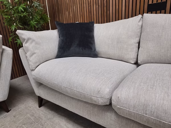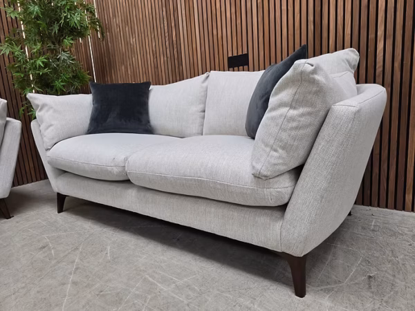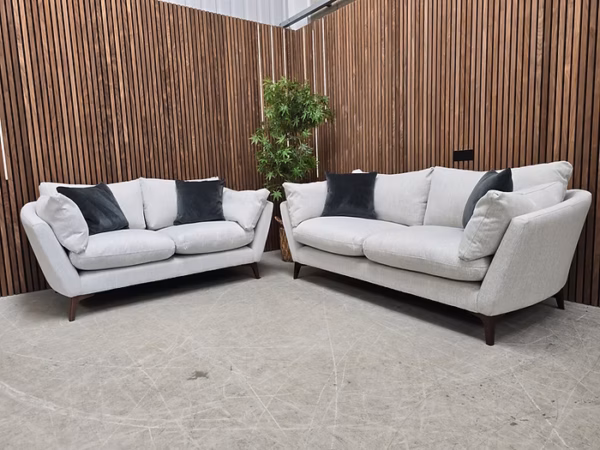 Designer Label Retro Modern 3 Seater & 2 Seater Sofa In Ecru Fabric RRP-£2998
